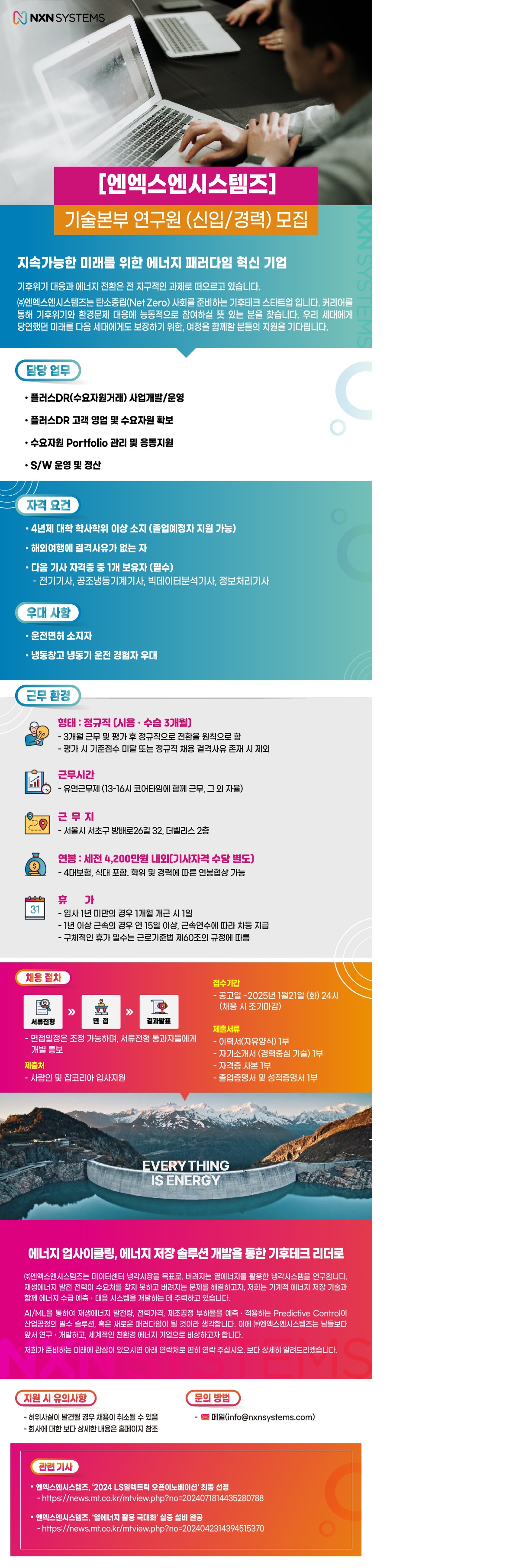 [엔엑스엔시스템즈] 기술본부 연구원 채용