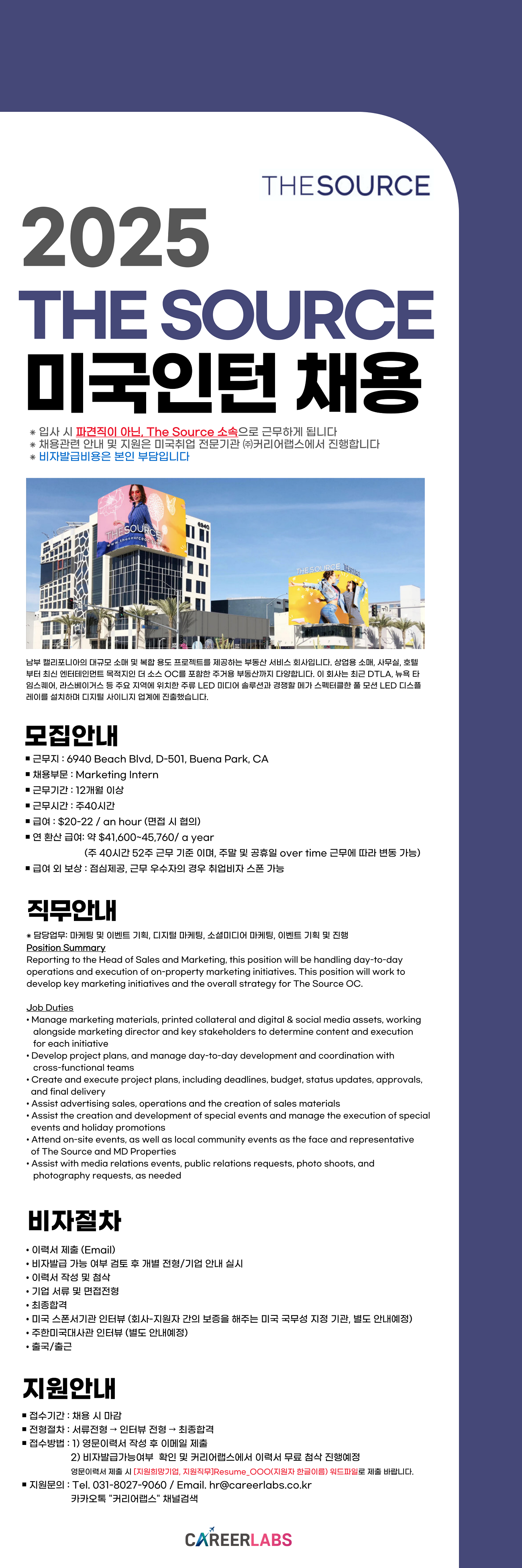 [The Source OC] (해외취업) 미국기업 마케팅 인턴 채용 (커리어랩스)