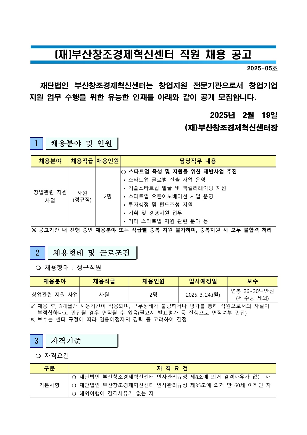 [(재)부산과학기술고등교육진흥원] 2025년도 제1차 직원(부설기관) 채용 공고문