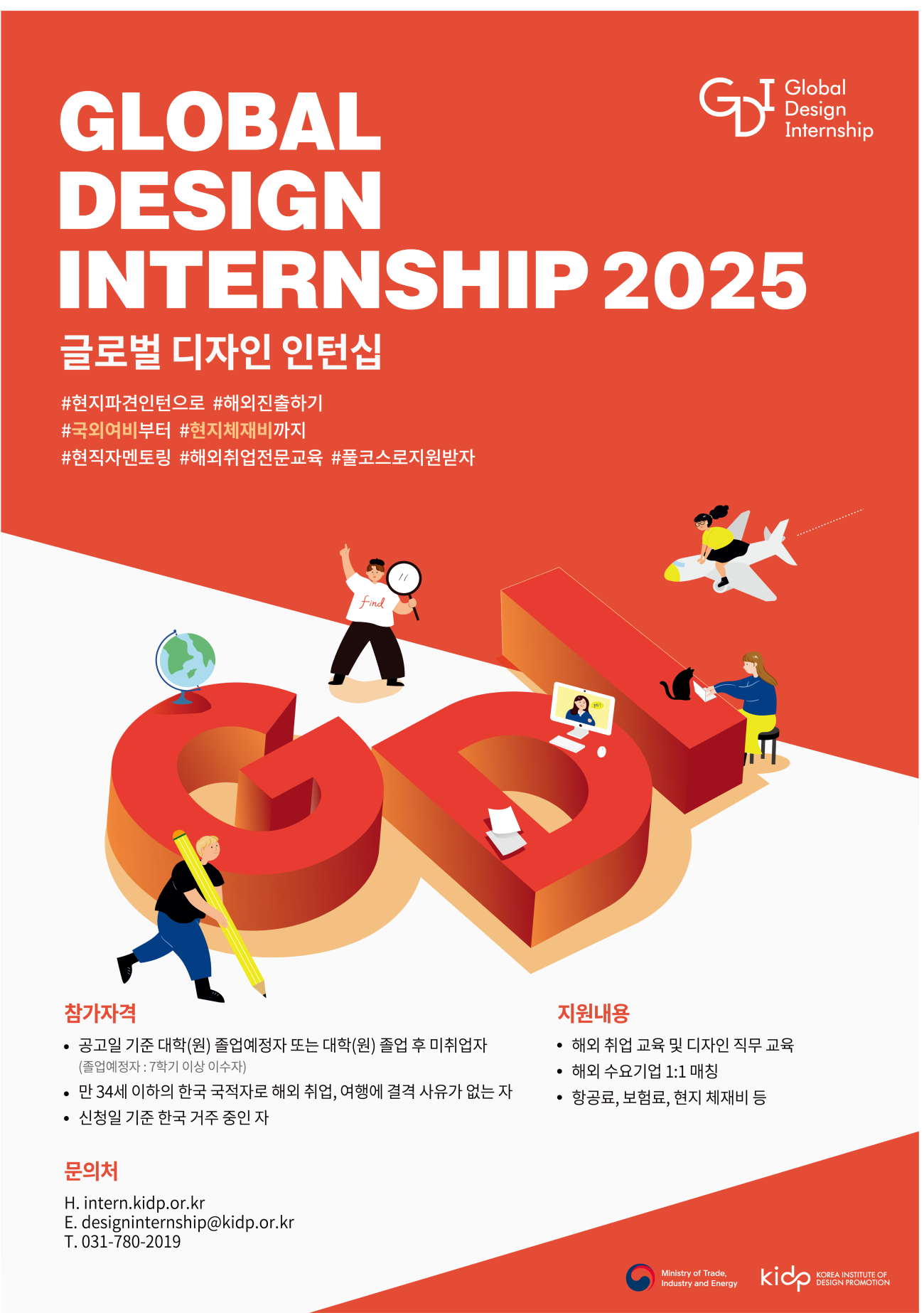 [한국디자인진흥원] 2025년 해외인턴 지원사업 인턴 디자이너 모집 (해외기업 근무)