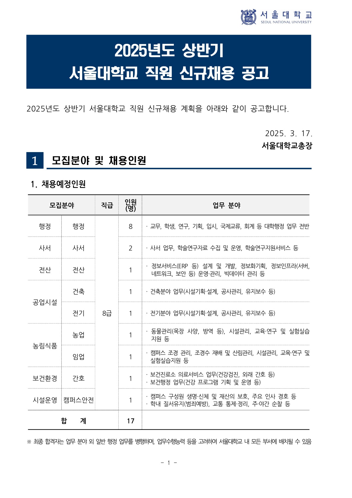 (붙임) 2025년도 상반기 서울대학교 직원 신규채용 공고.pdf