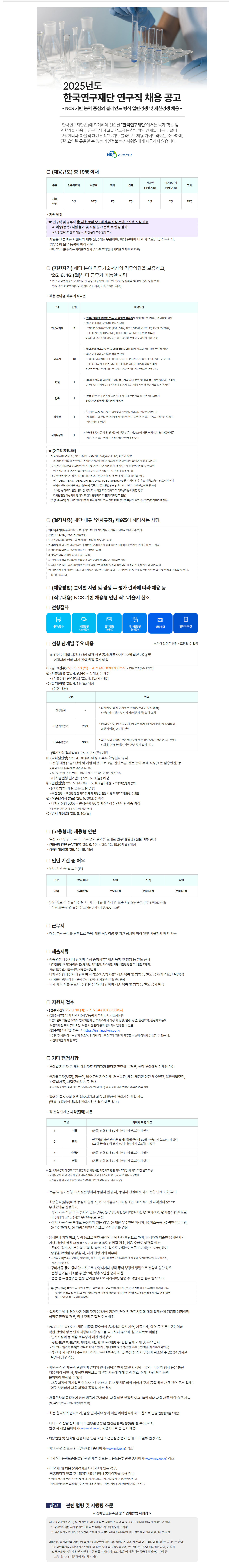 [한국연구재단] 2025년도 한국연구재단 연구직 채용