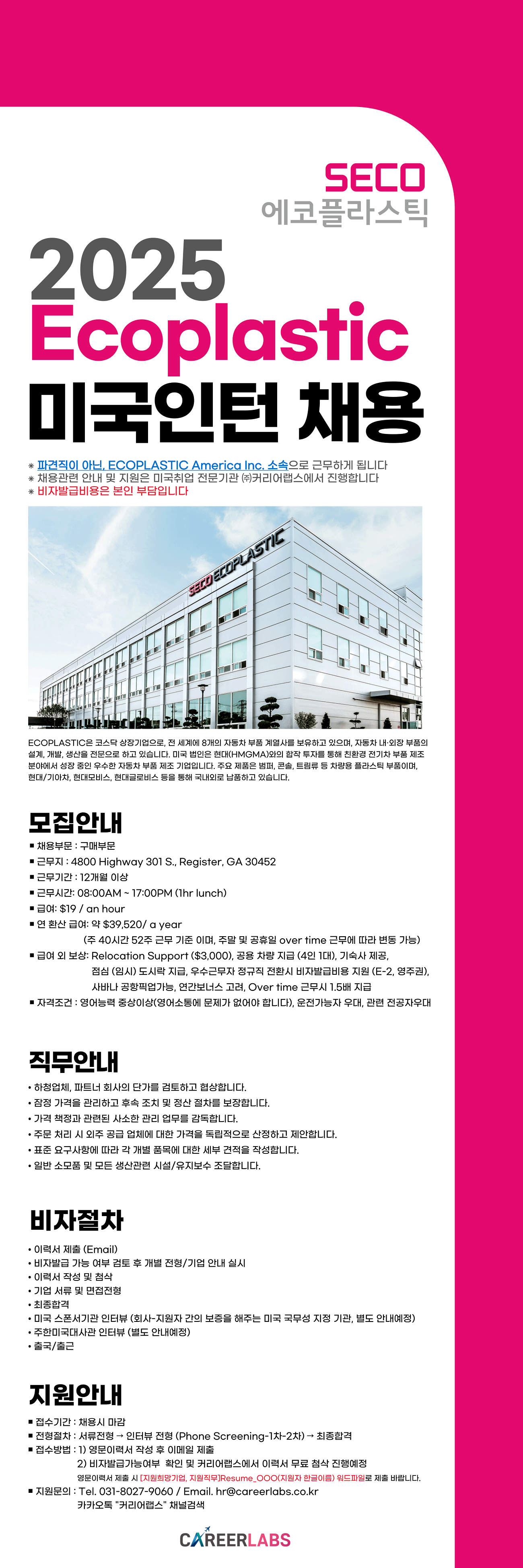 [ECOPLASTIC] (해외취업) 북미법인 구매 부문 인턴 채용 (커리어랩스)