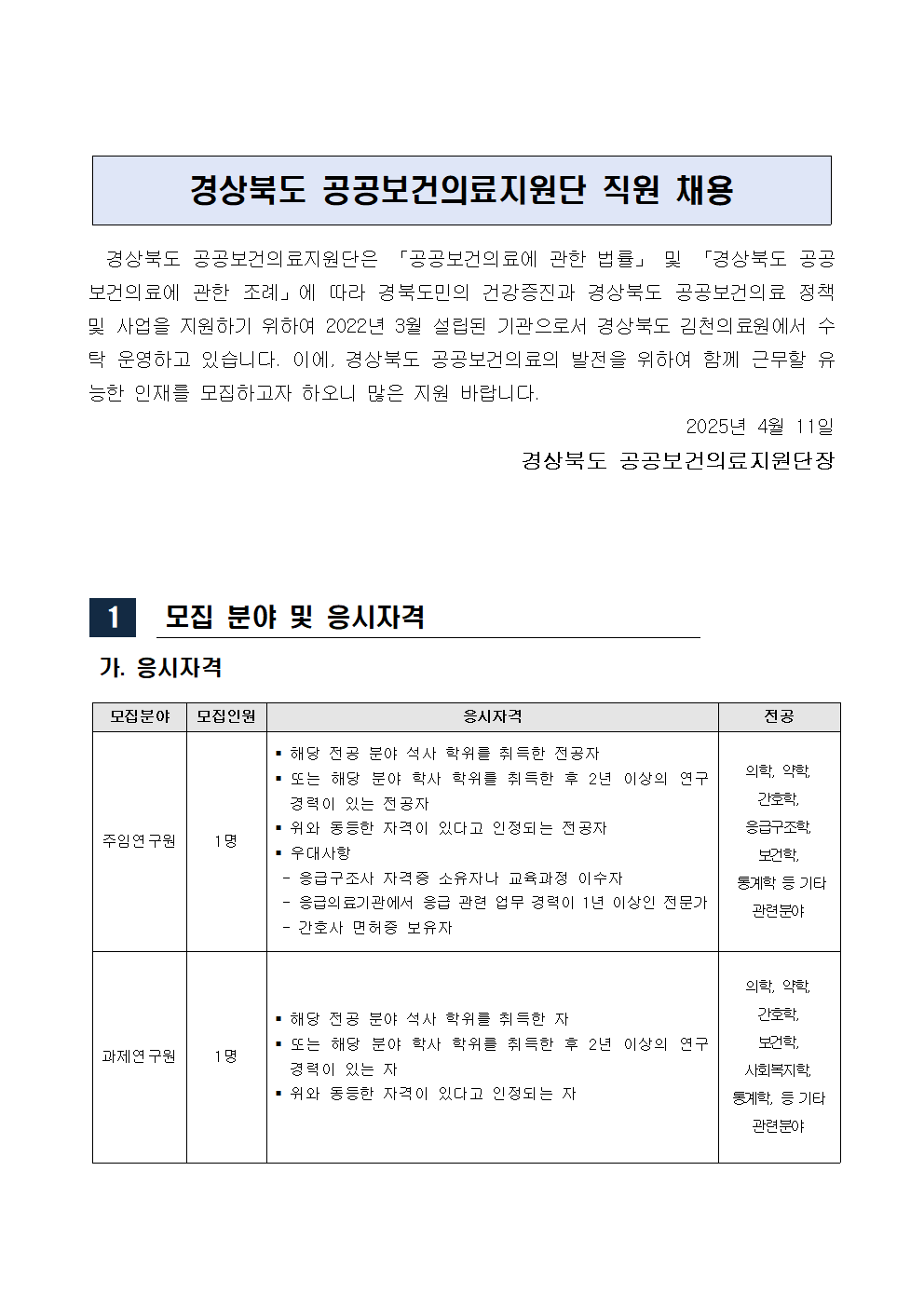 붙임1. 경상북도 공공보건의료지원단 직원 채용 공고.hwp