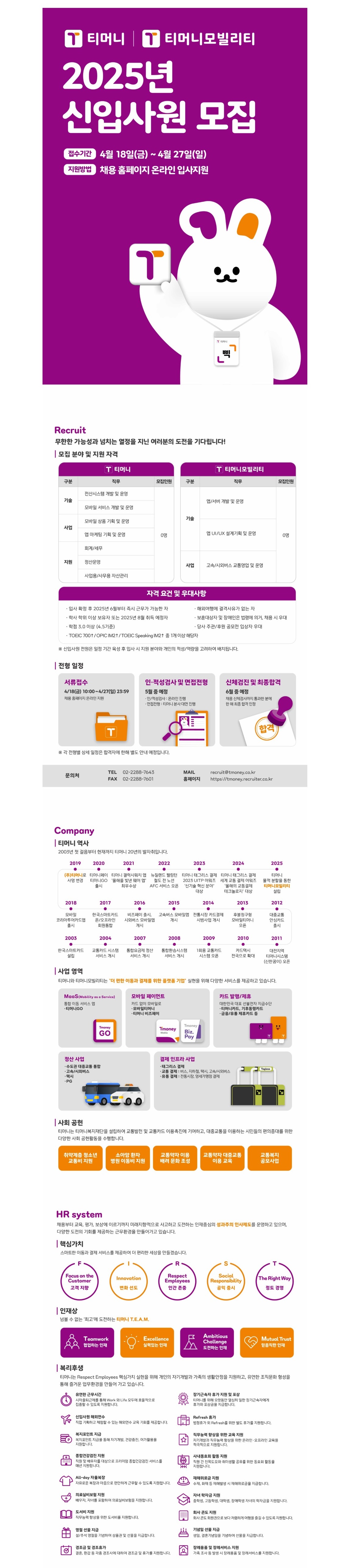 [티머니&티머니모빌리티] 2025년 신입사원 공개채용