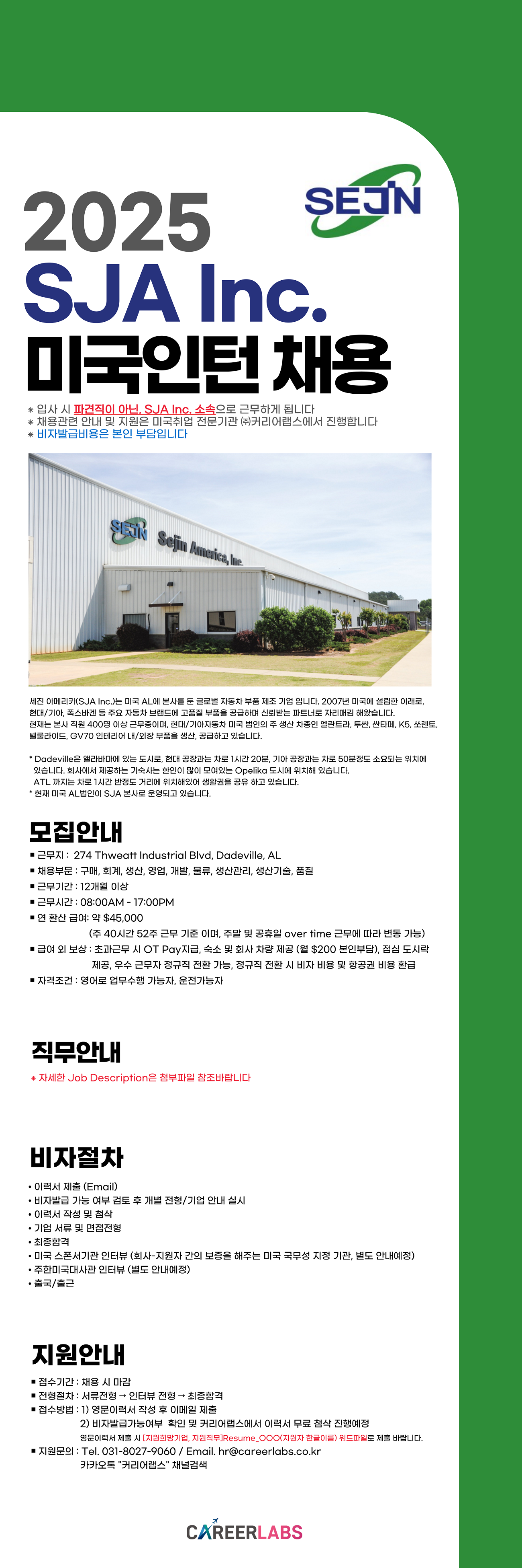 [CJ Logistics America] (해외취업) 물류, HR 인턴 채용 (GHR)