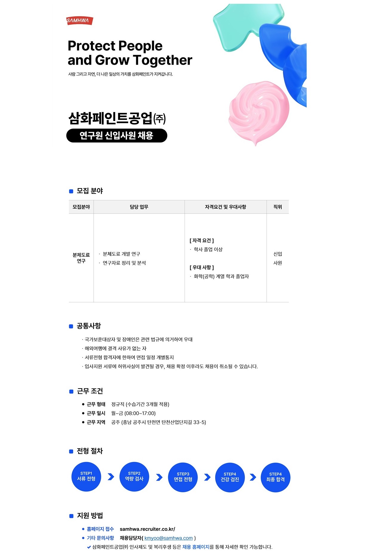 [삼화페인트공업] 25년 연구원 신입사원 채용