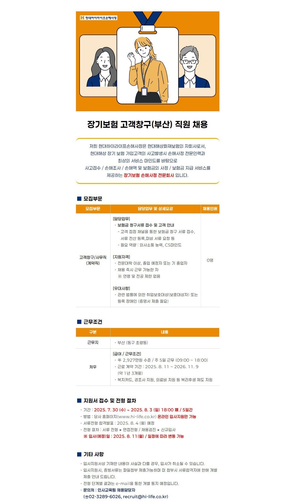 [현대하이라이프손해사정] 장기보험 고객창구(부산) 직원 채용