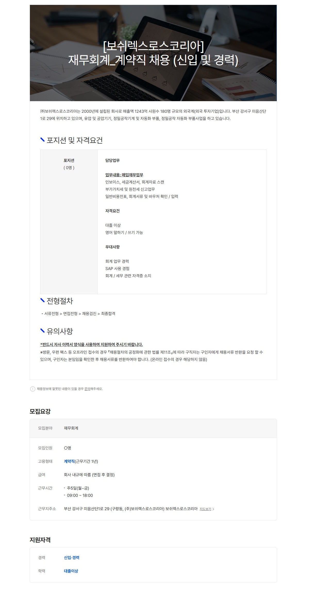 공고제목 : [보쉬렉스로스코리아]재무회계_계약직 채용(신입/경력)