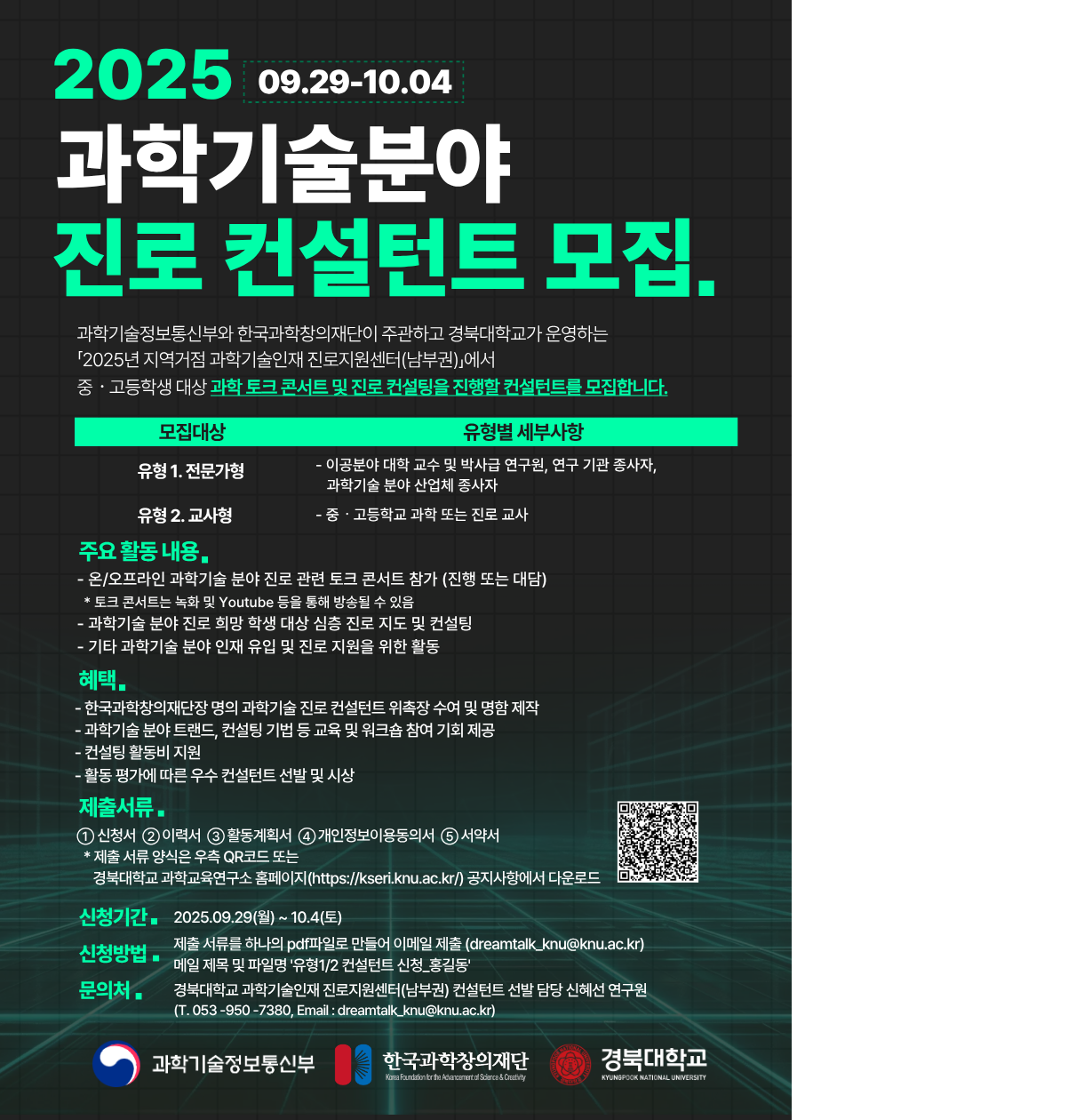 [지역거점 과학기술인재 진로지원센터] 2025년 신규 진로 컨설턴트 모집 (남부권)