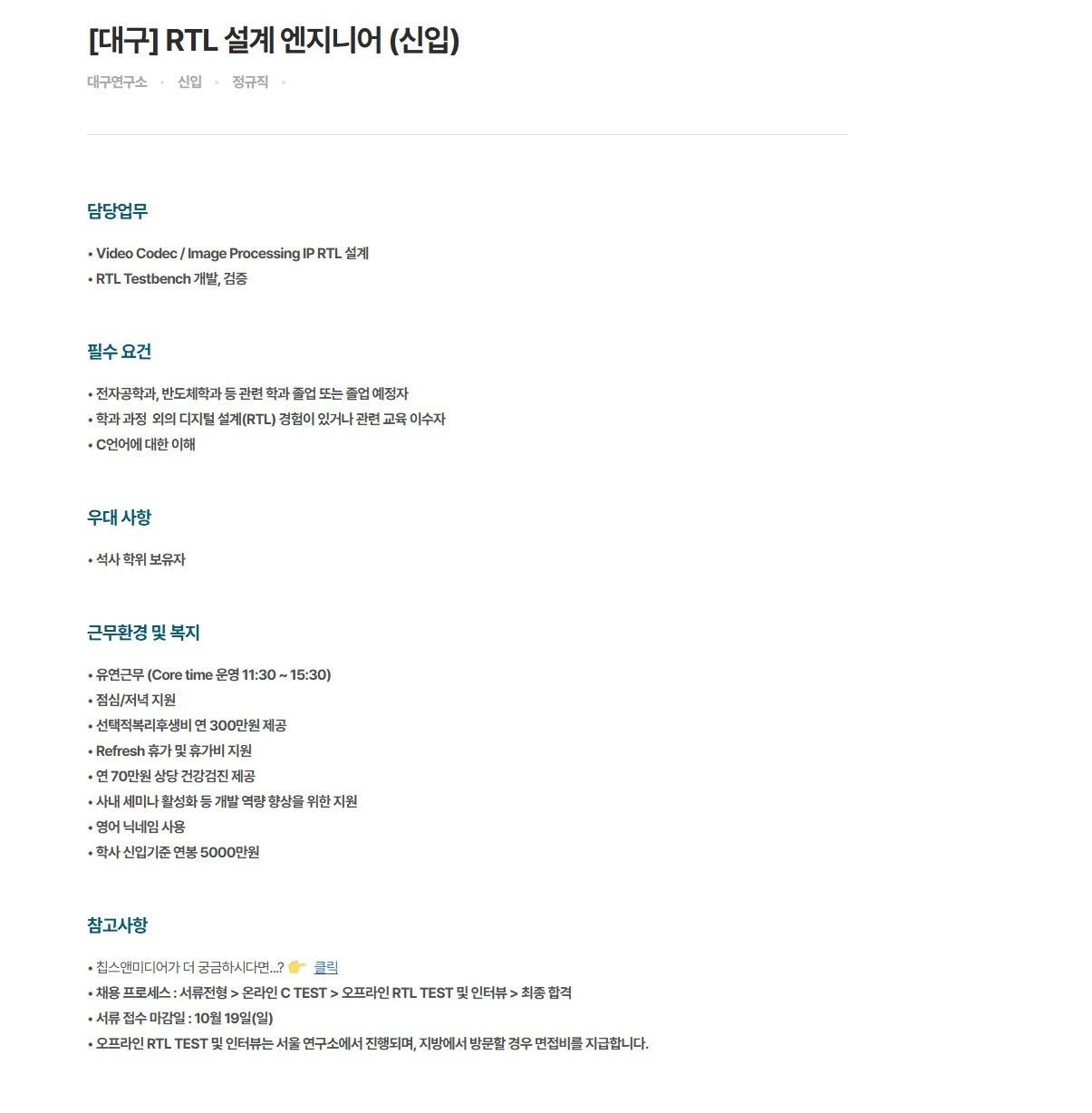 [칩스앤미디어] RTL 설계 엔지니어 (신입) (대구)