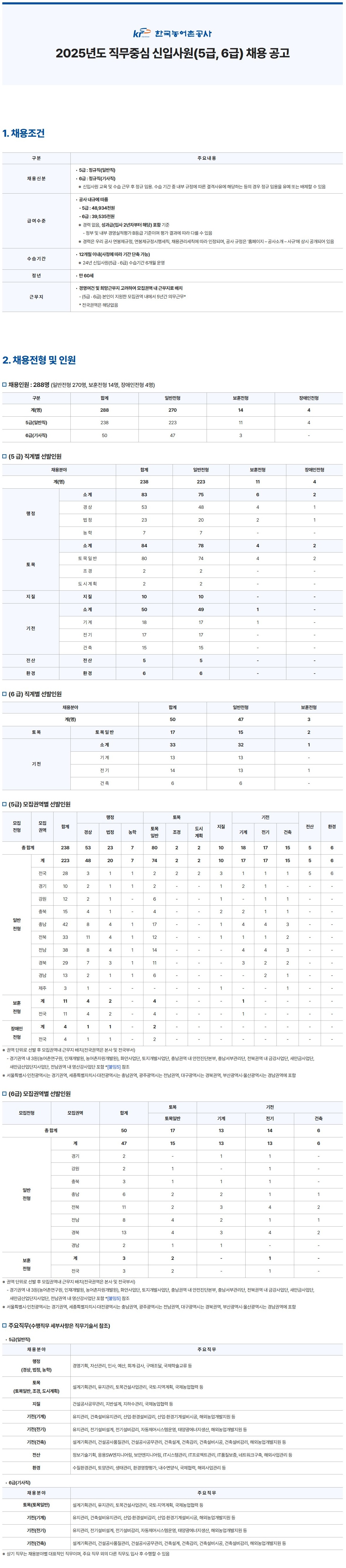 [한국농어촌공사] 2025년도 직무중심 신입사원(5급, 6급) 채용 공고