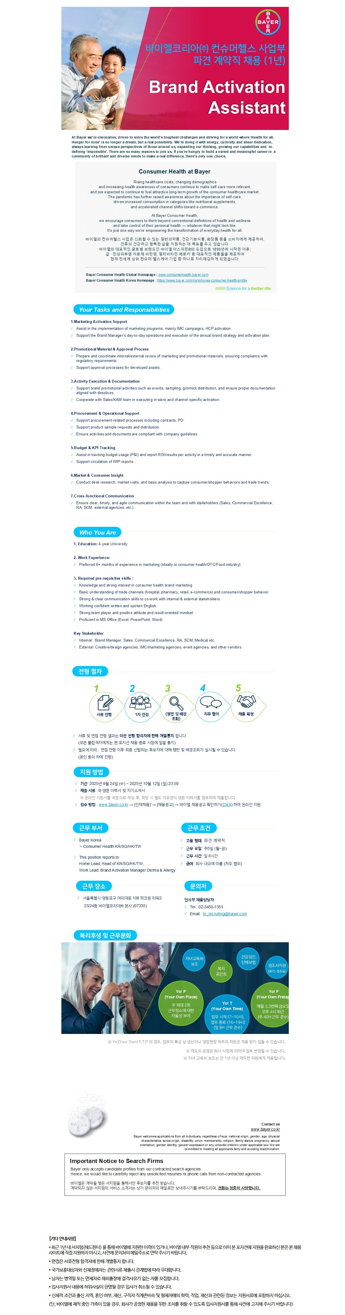[바이엘코리아] Brand Activation Assistant (파견 계약직 1년)