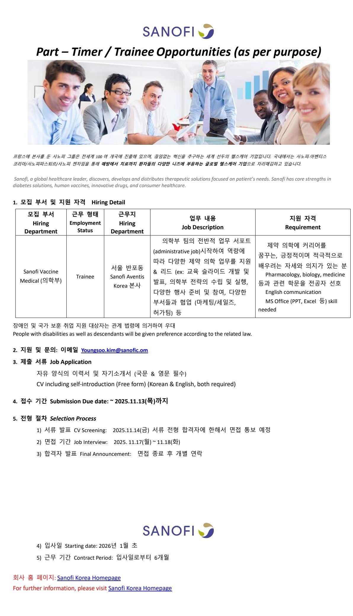 지원 및 문의: Youngsoo.kim@sanofi.com