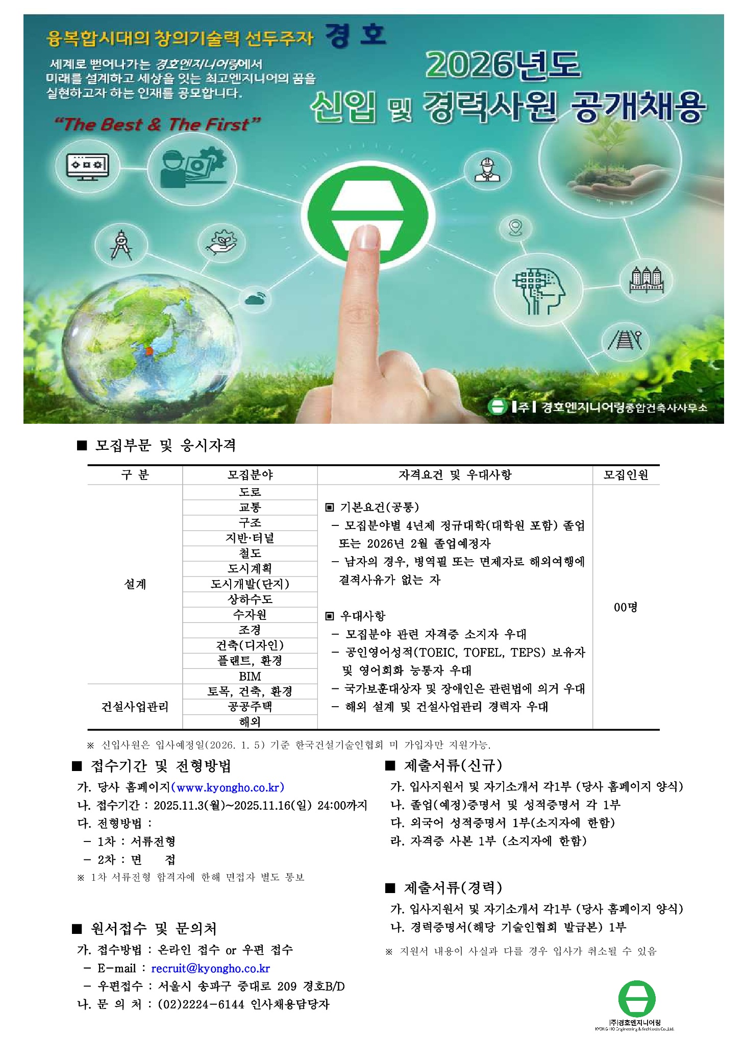 [경호엔지니어링] 2026년도 신입 및 경력 사원 공개채용