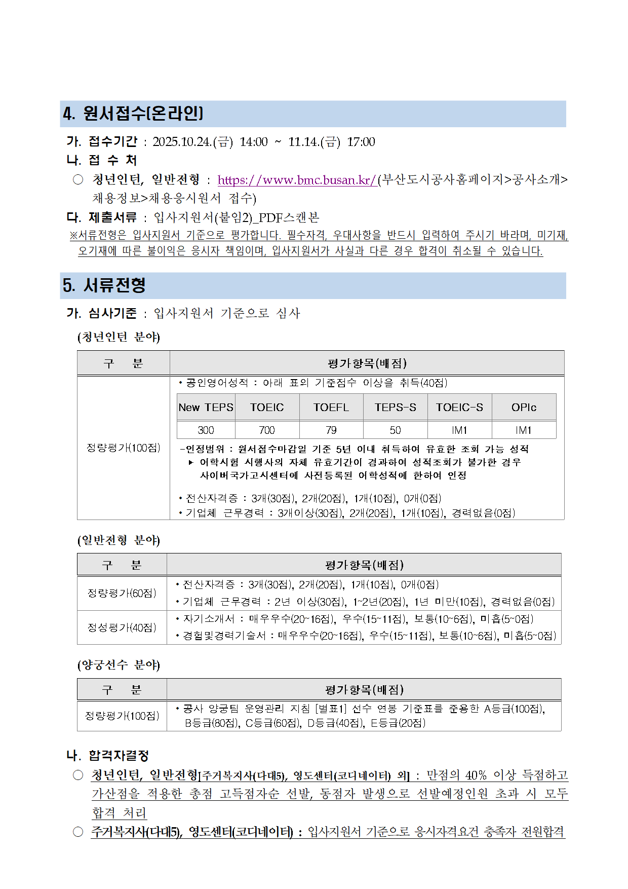 [부산도시공사] 2025년 하반기 기간제직원 모집공고