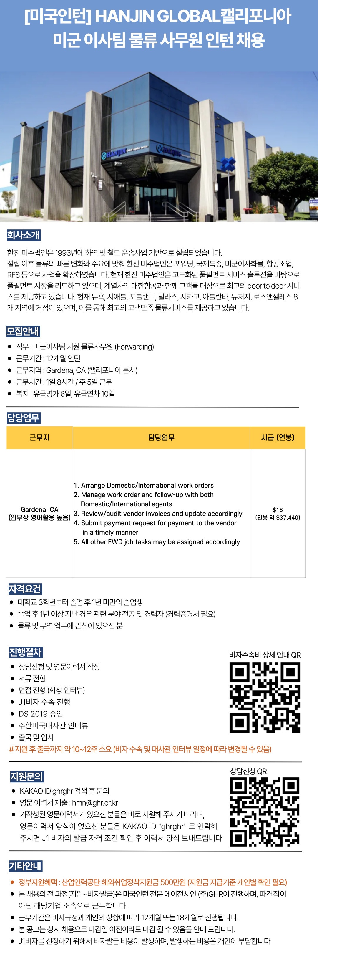 [Green Village USA Inc.] (해외취업) Logistics & Wholesale Associate 인턴 채용 (GHR)
