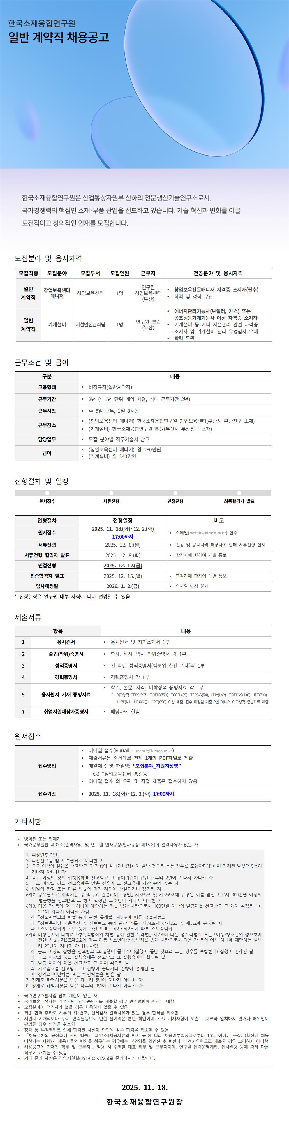 [한국소재융합연구원] 과제참여연구원 채용공고