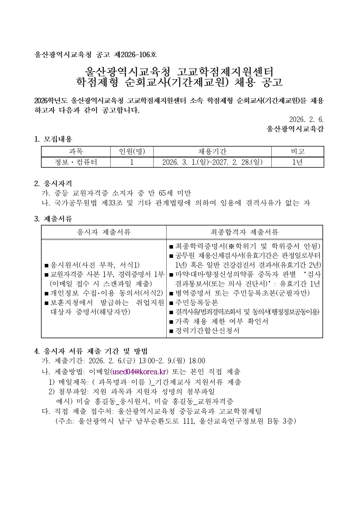 [붙임 2] 2026학년도 학점제형 순회교사(기간제교원) 채용 공고문.hwp