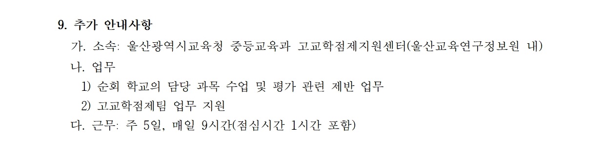 [울산광역시교육청] 고교학점제지원센터 학점제형 순회교사(기간제교원) 채용 공고