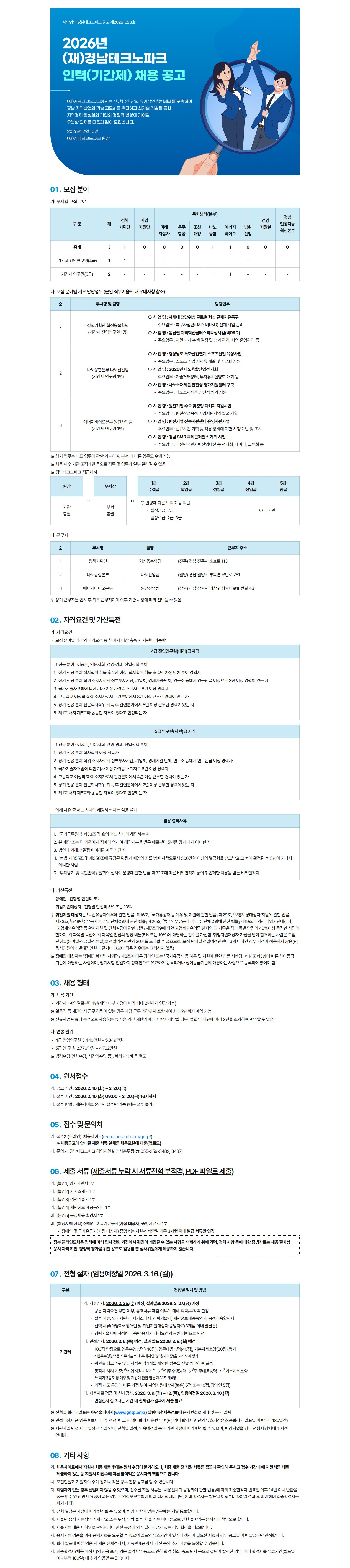 [(재)경남테크노파크] 2026년 인력(기간제) 채용 공고