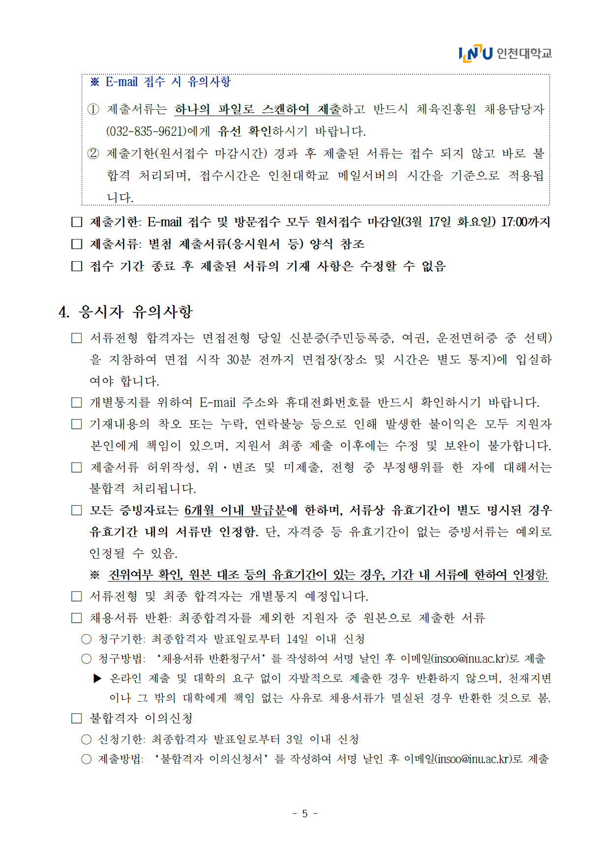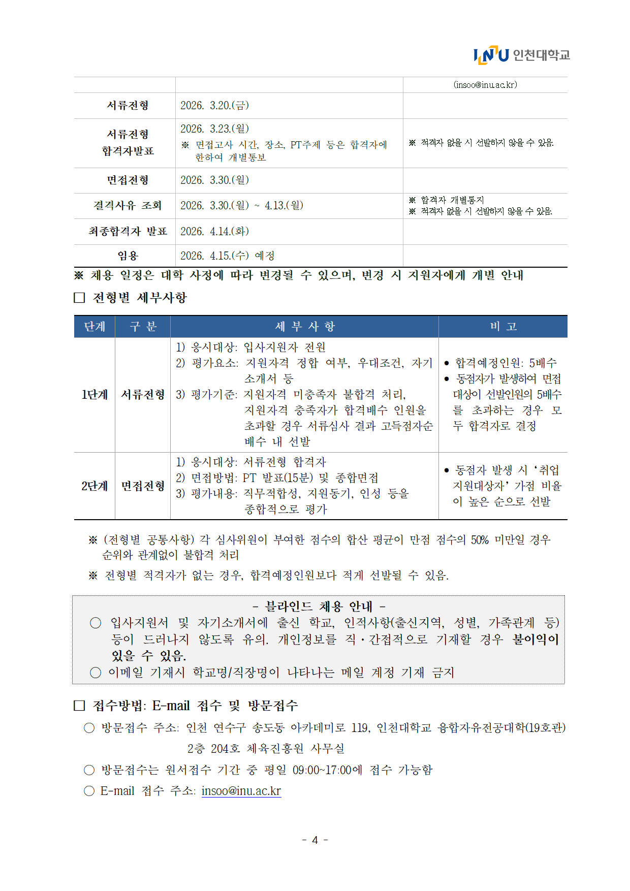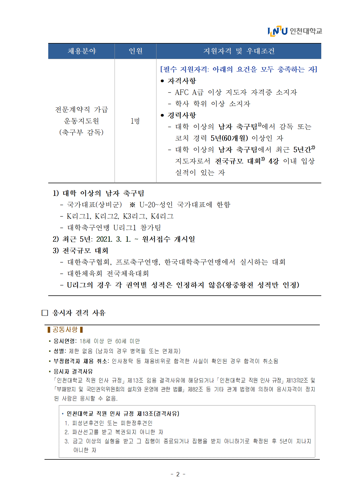 [인천대학교] 2026년도 전문계약직(축구부 감독) 채용 공고