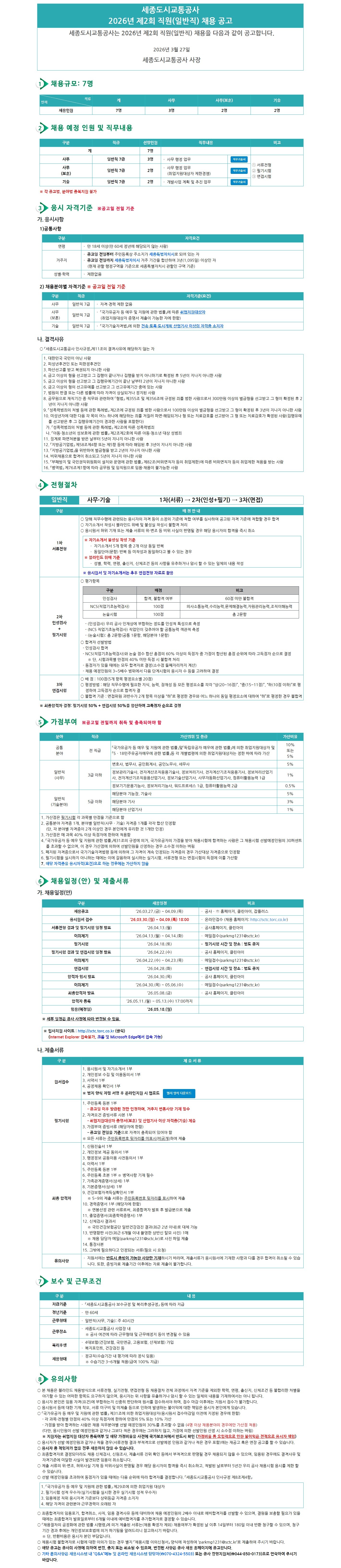 [세종도시교통공사] 2026년 제2회 직원(일반직) 채용 공고