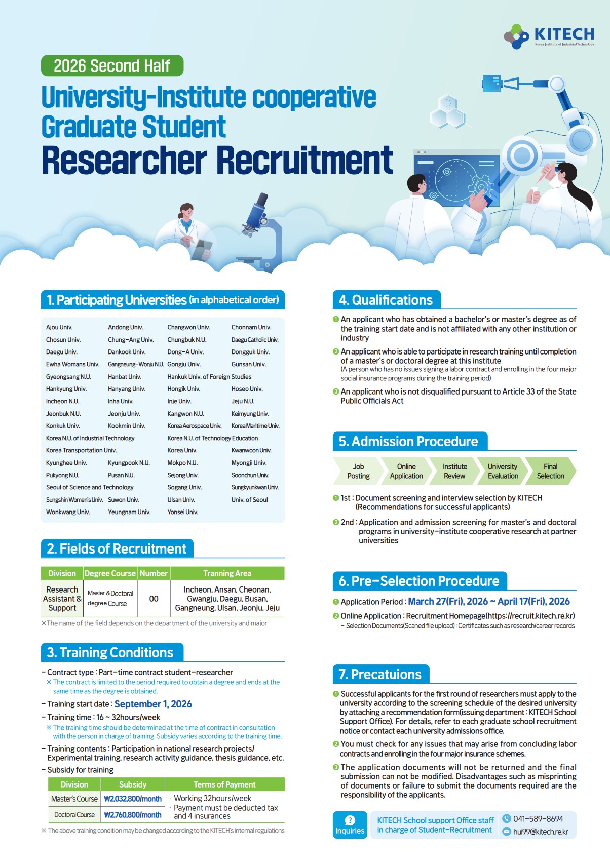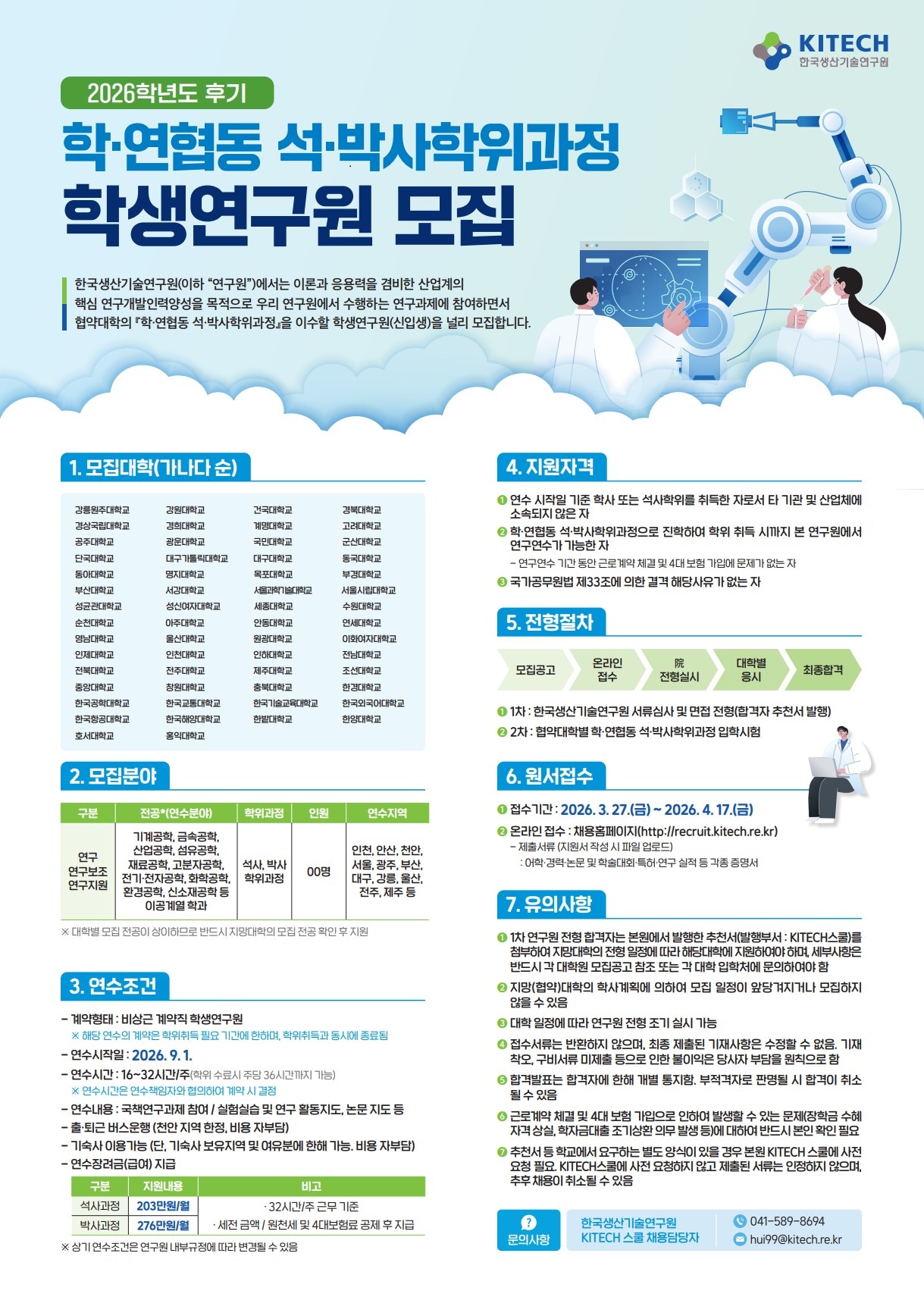 [한국생산기술연구원] 2026학년도 후기 학연협동 석박사학위 과정 학생연구원 모집