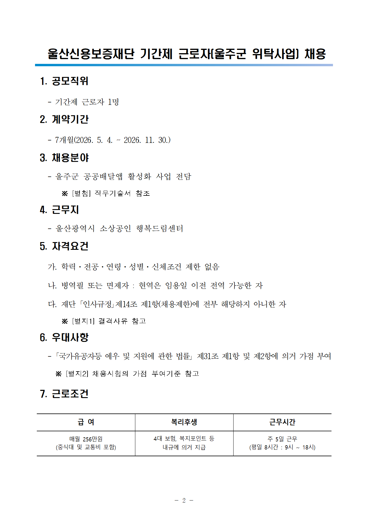 [울산신용보증재단] 기간제 근로자(울주군 위탁사업) 채용 공고