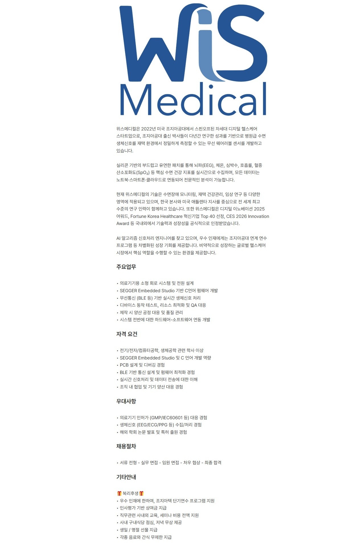 [위스메디컬] 소프트웨어 엔지니어 채용