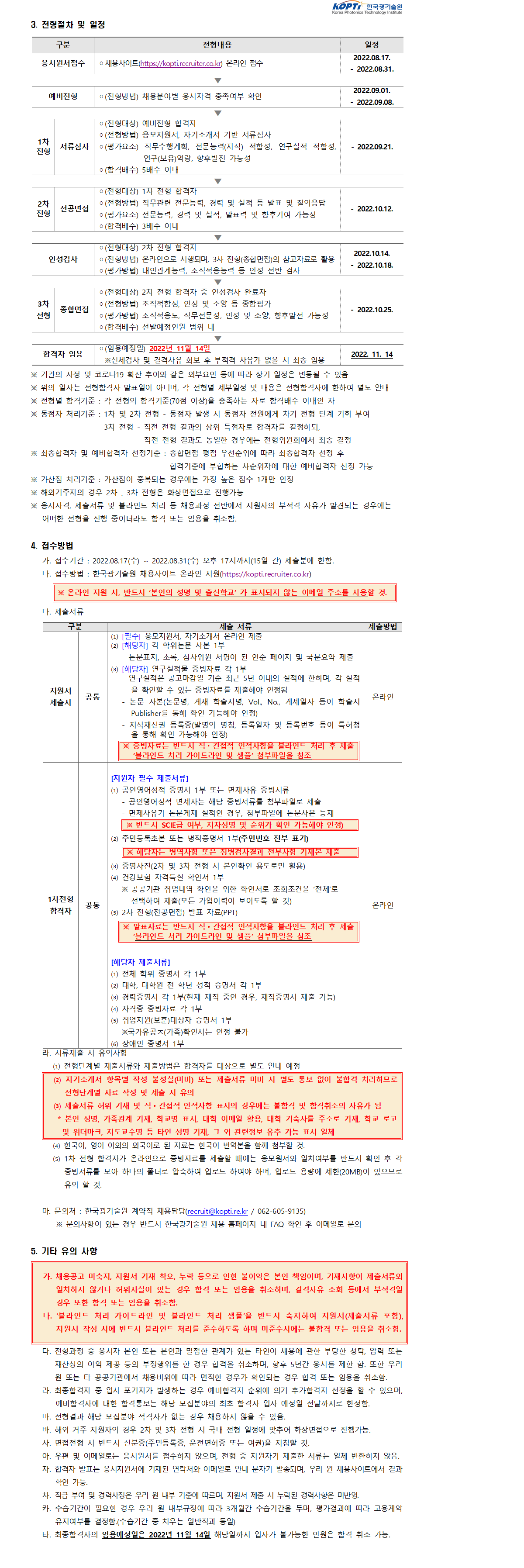 [한국광기술원] 2022년도 하반기 일반직 및 인턴(채용연계형) 채용 공고