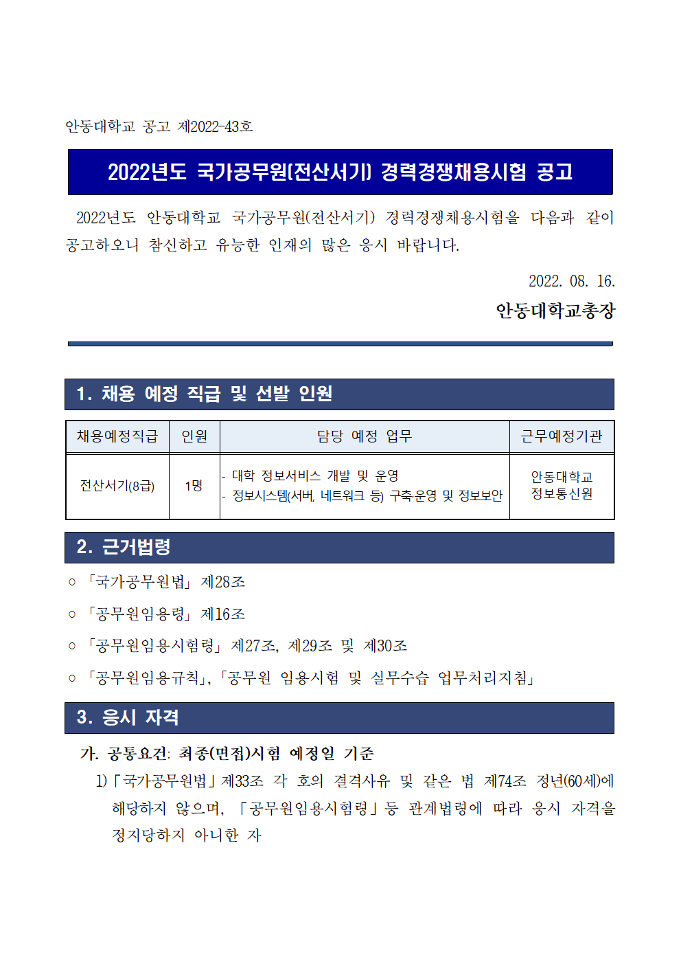 안동대학교 국가공무원(전산서기) 경력경쟁채용시험 공고.hwp