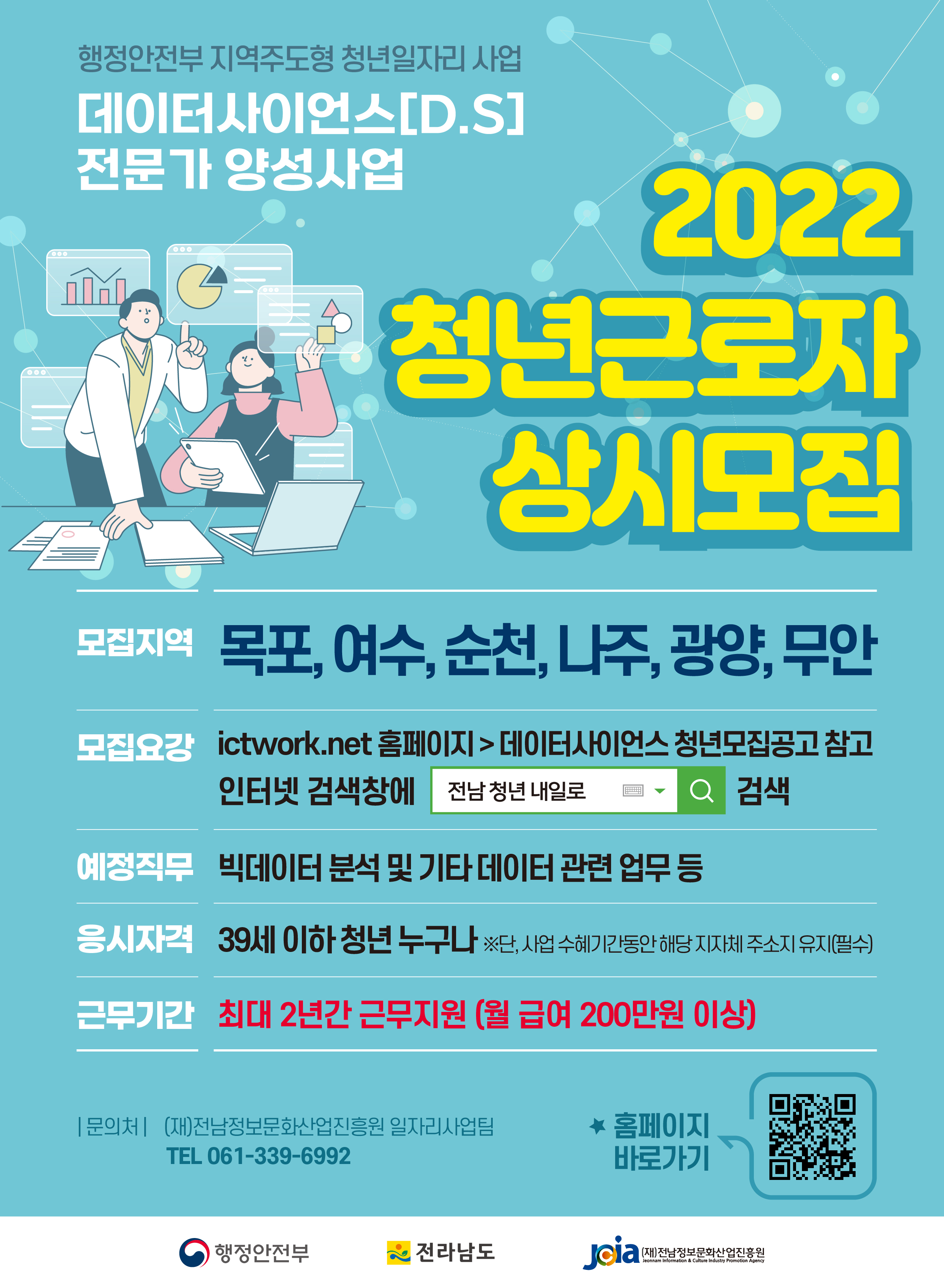 [전라남도정보문화산업진흥원] 데이터사이언스(D.S) 전문가 양성사업 청년근로자 상시모집