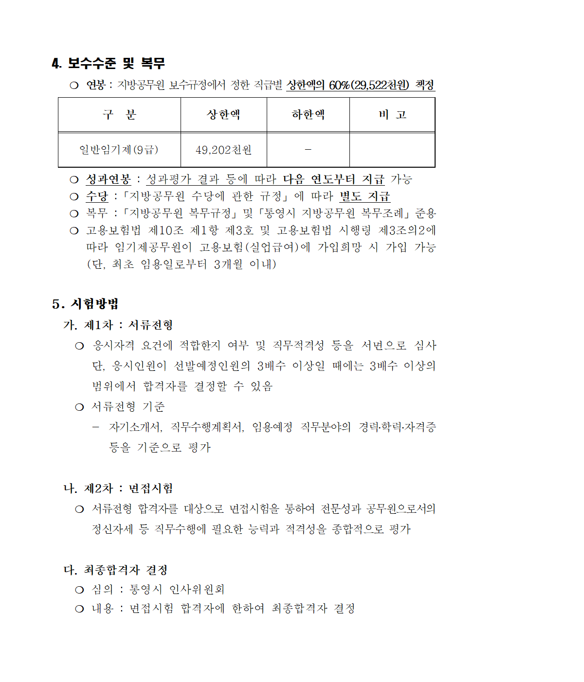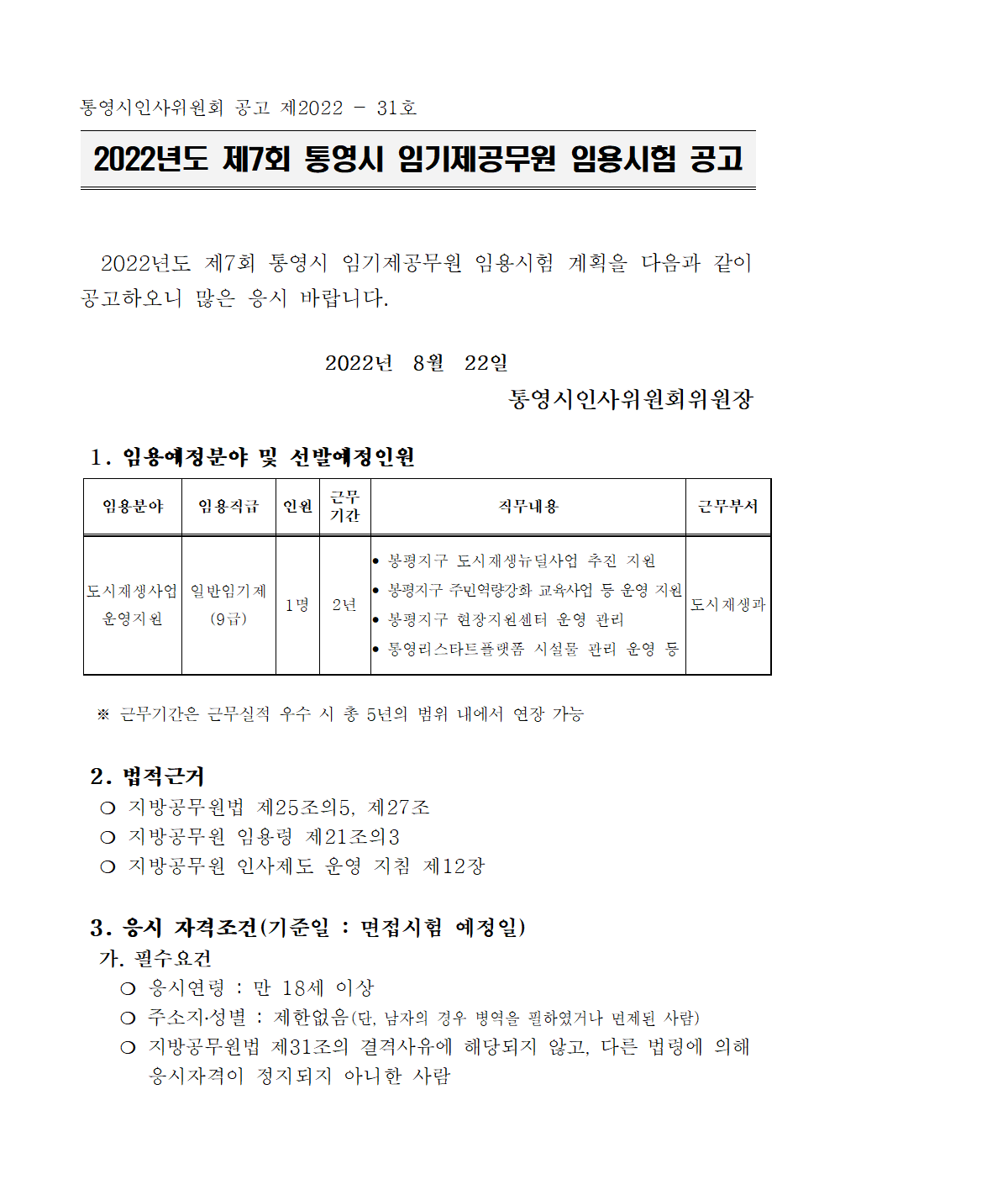 [통영시] 2022년도 제7회 통영시 임기제공무원 임용시험 공고