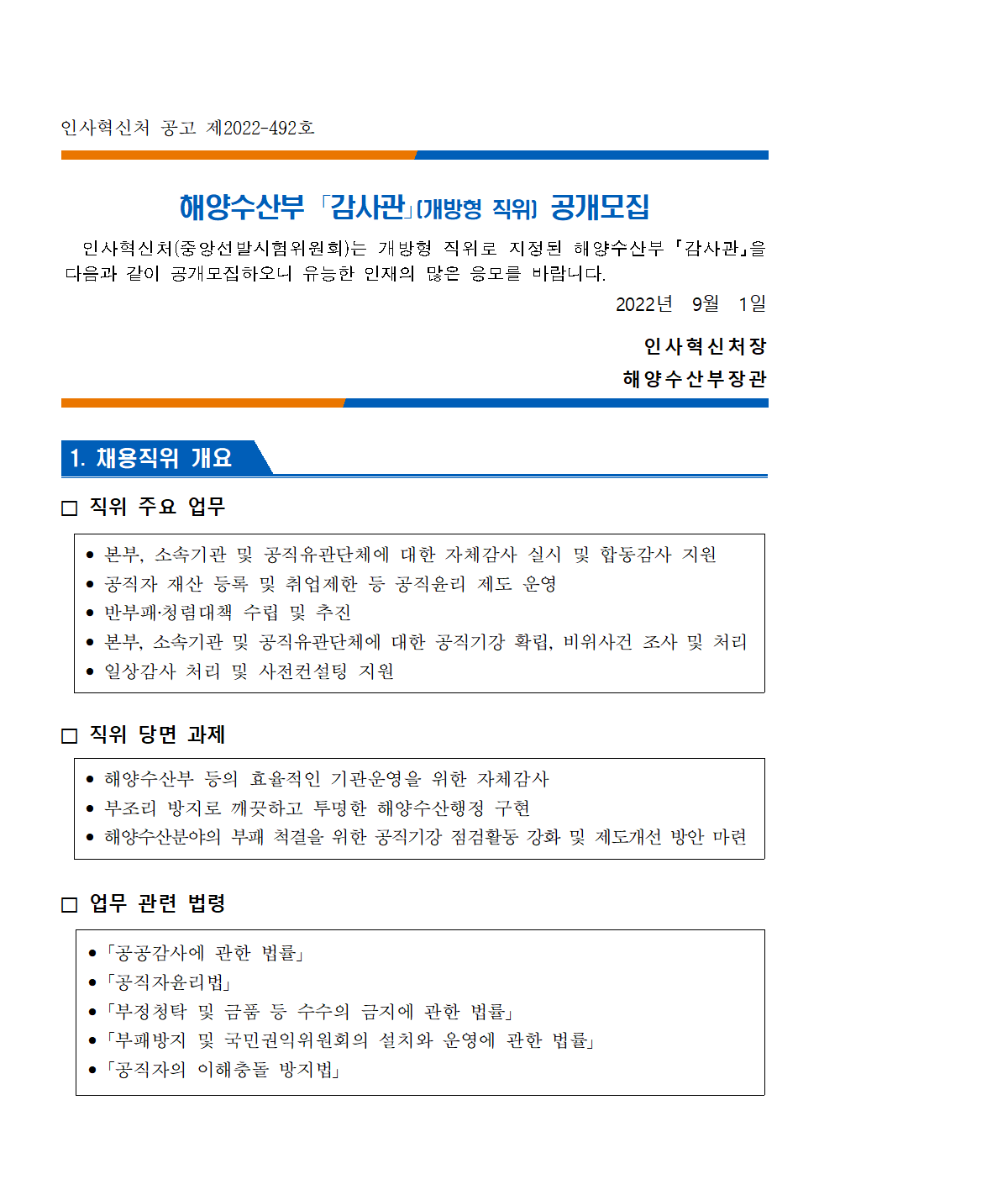 1-1. 2022-492호 해양수산부 감사관(개방형 직위) 공개모집 공고문.pdf