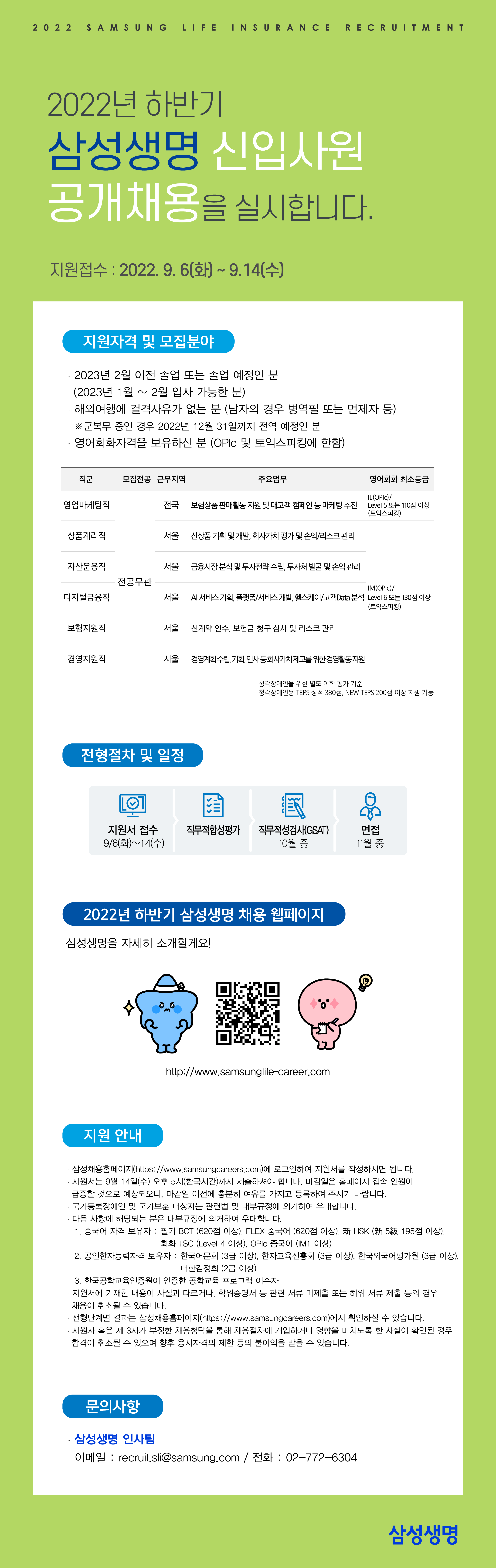 [삼성생명] 2022 하반기 삼성생명 신입사원 공개채용