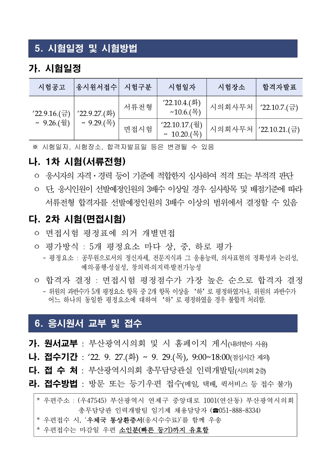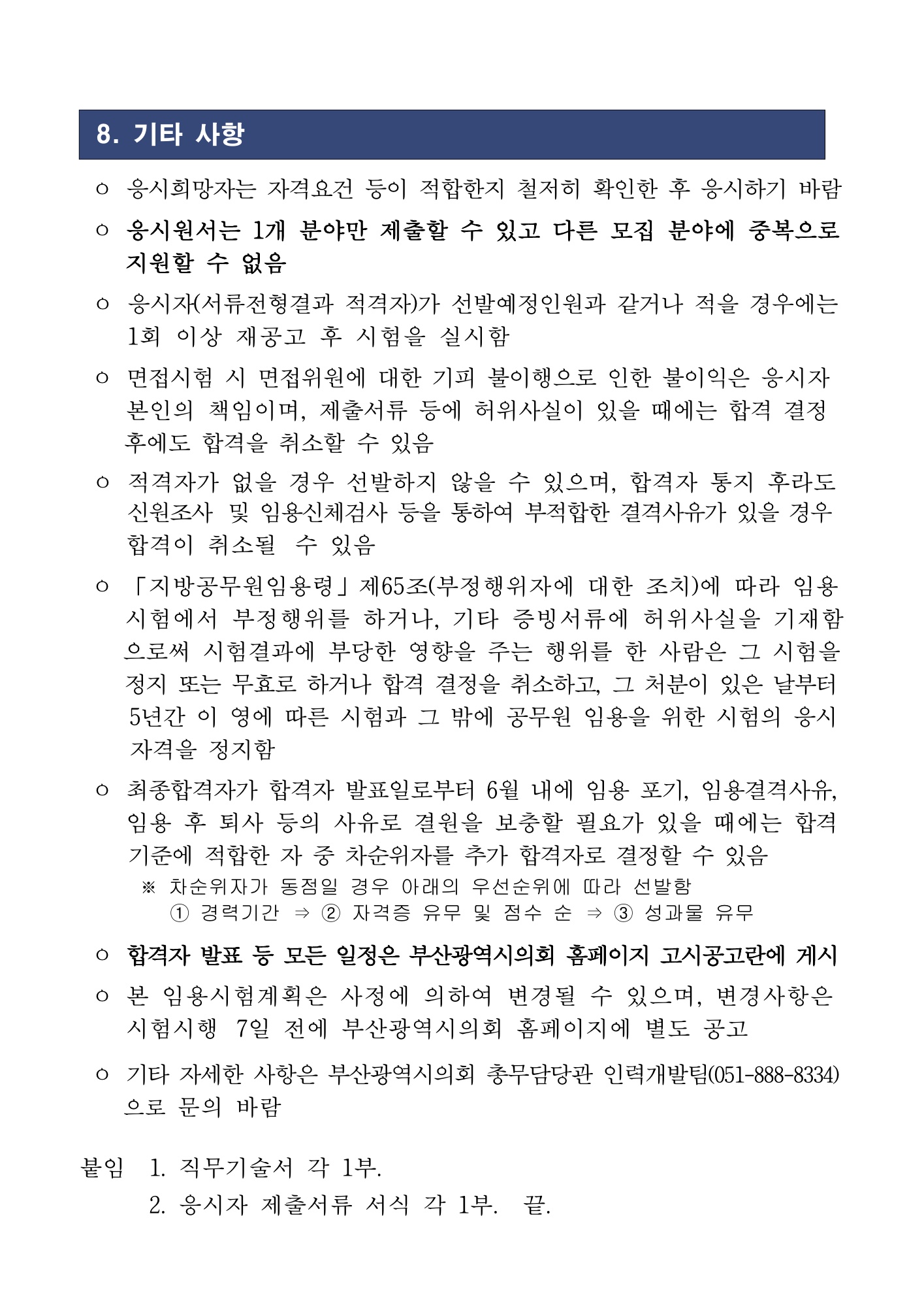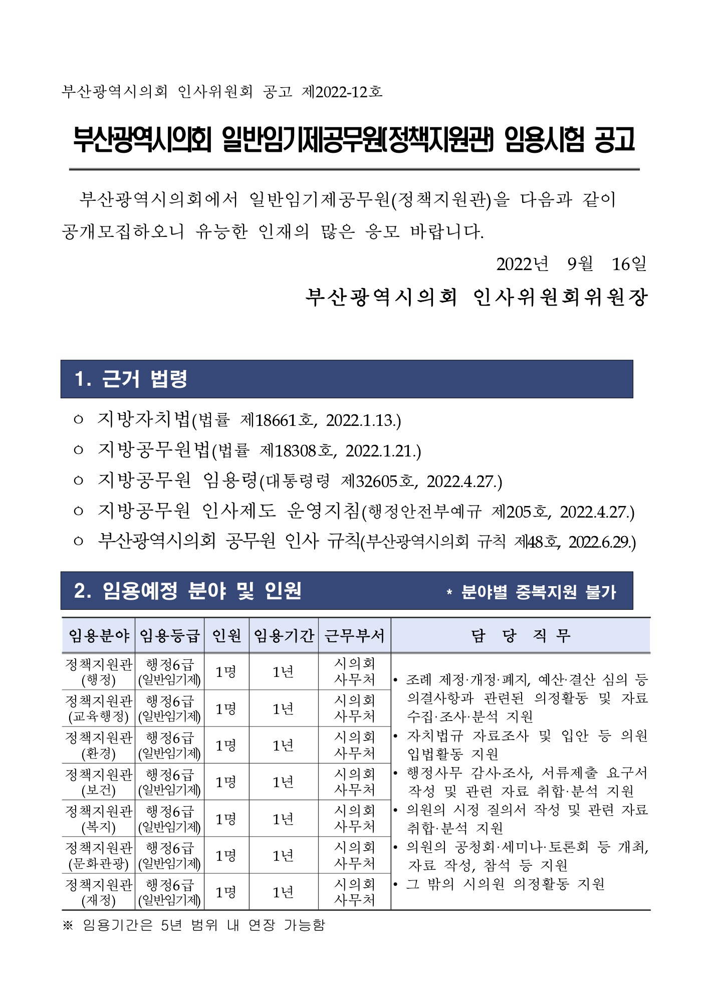 [부산광역시의회] 임기제공무원(정책지원관) 임용시험 공고