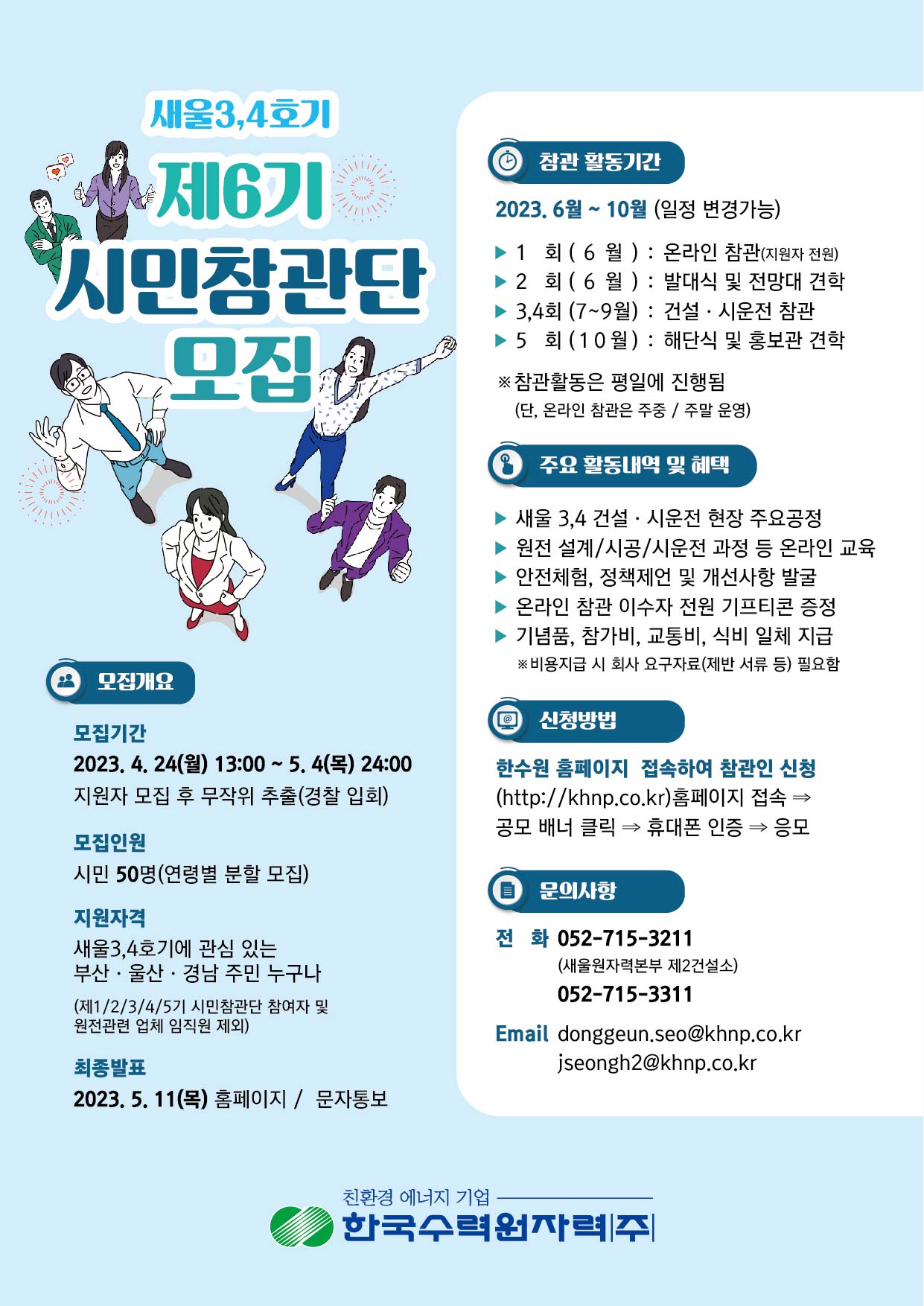 ○ 모집개요 : 한국수력원자력 새울3,4호기 건설, 시운전 현장 주요 공정 참관, 안전체험, 정책제언 및 개선사항 발굴