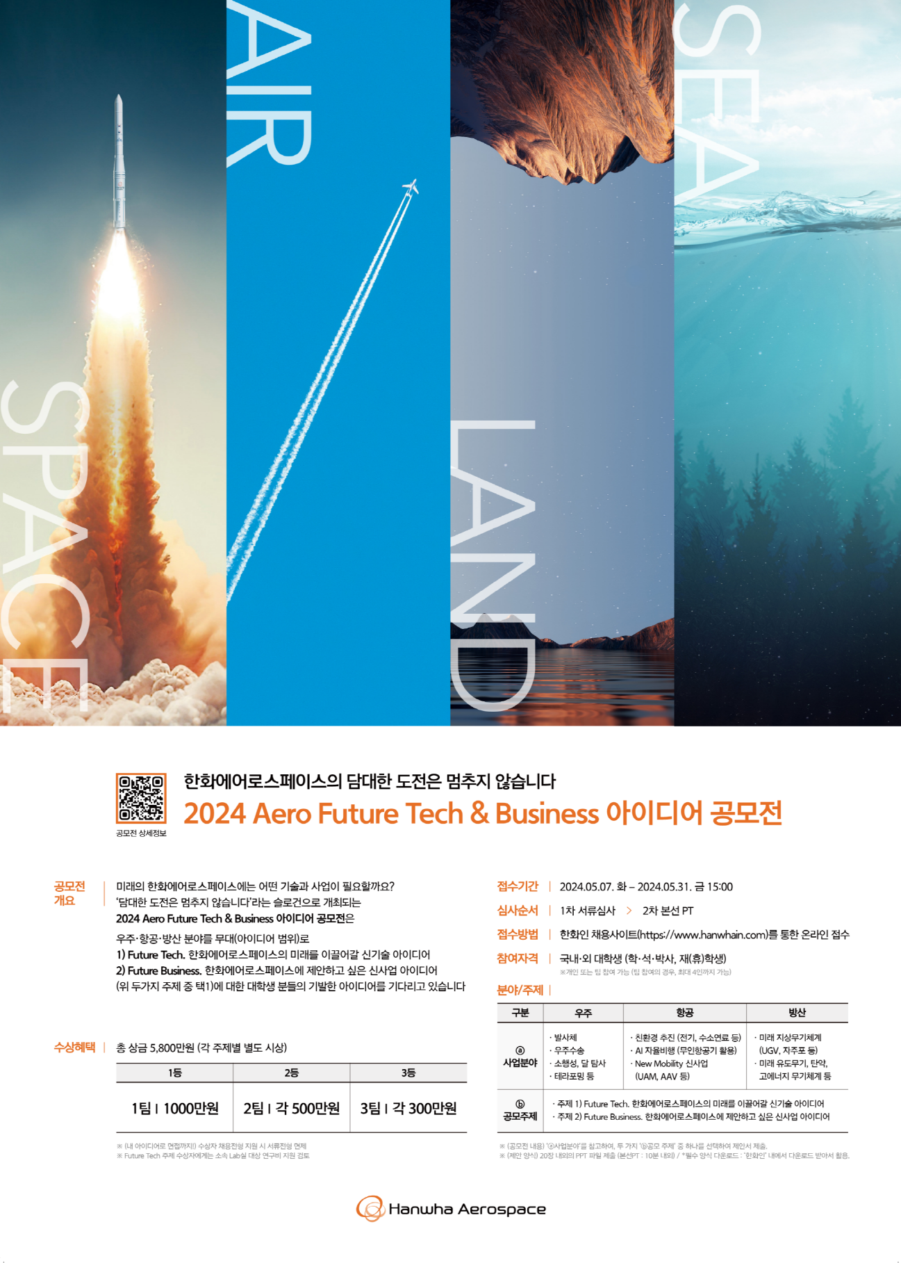 한화에어로스페이스 신기술/신사업 아이디어 공모전(~5/31)