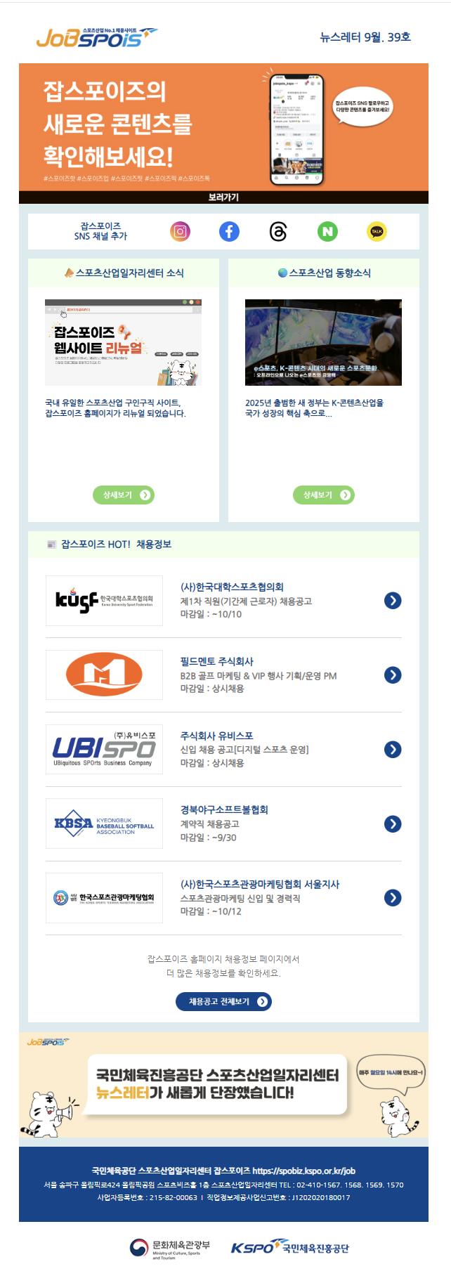 스포츠산업 일자리센터 JOBSPOIS > 사업소개 > 센터소개