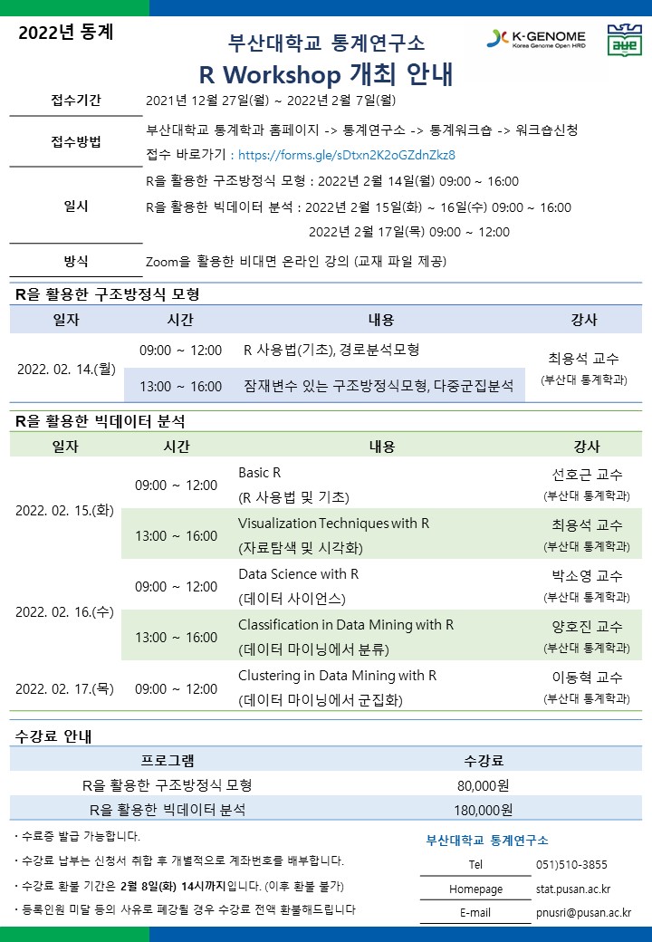 [부산대학교 통계연구소] R 워크숍 개채 홍보
