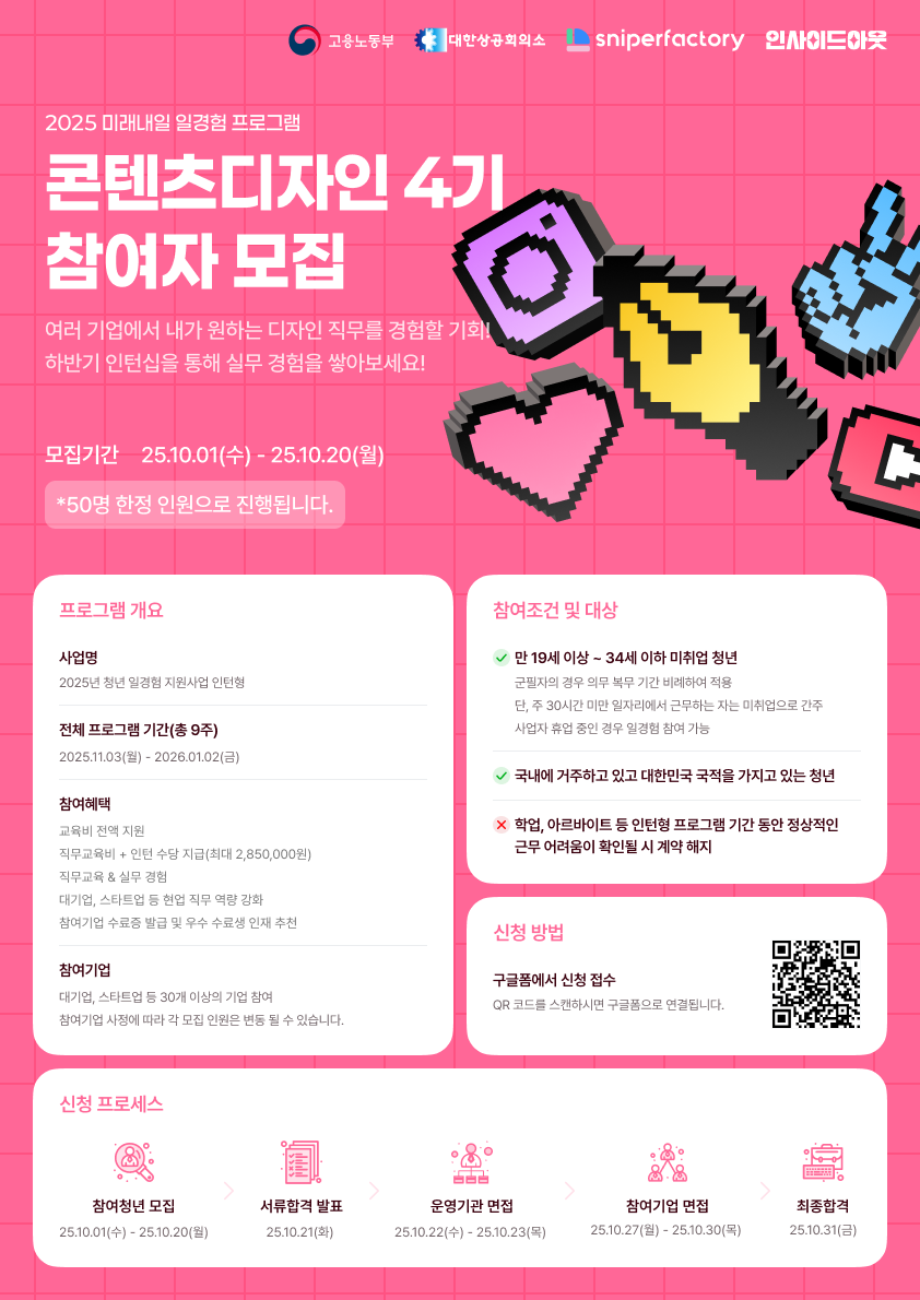 [고용노동부X스나이퍼팩토리] 2025 콘텐츠디자인 인턴십 4기(8주) - 미래내일 일경험 프로그램 참여자 모집