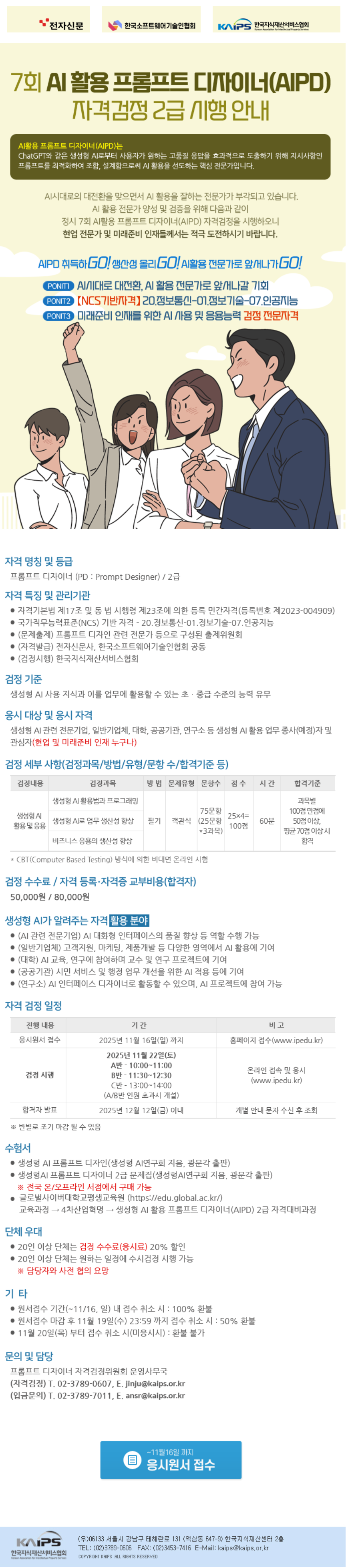 정시 7회 AI활용 프롬프트 디자이너(AIPD) 자격검정 2급 시행 안내(~11/16까지)