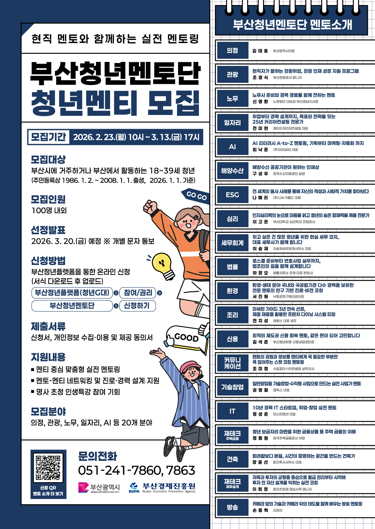 [부산광역시] 「2026년 부산청년멘토단 운영」참여자(멘티) 모집 안내