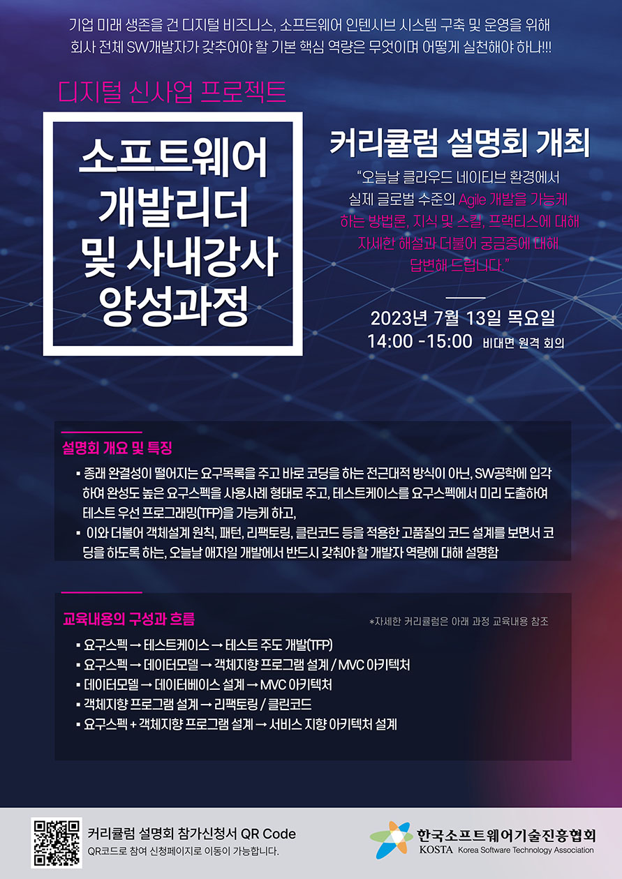 [한국소프트웨어기술진흥협회] 소프트웨어 개발리더 및 사내강사 양성과정 설명회