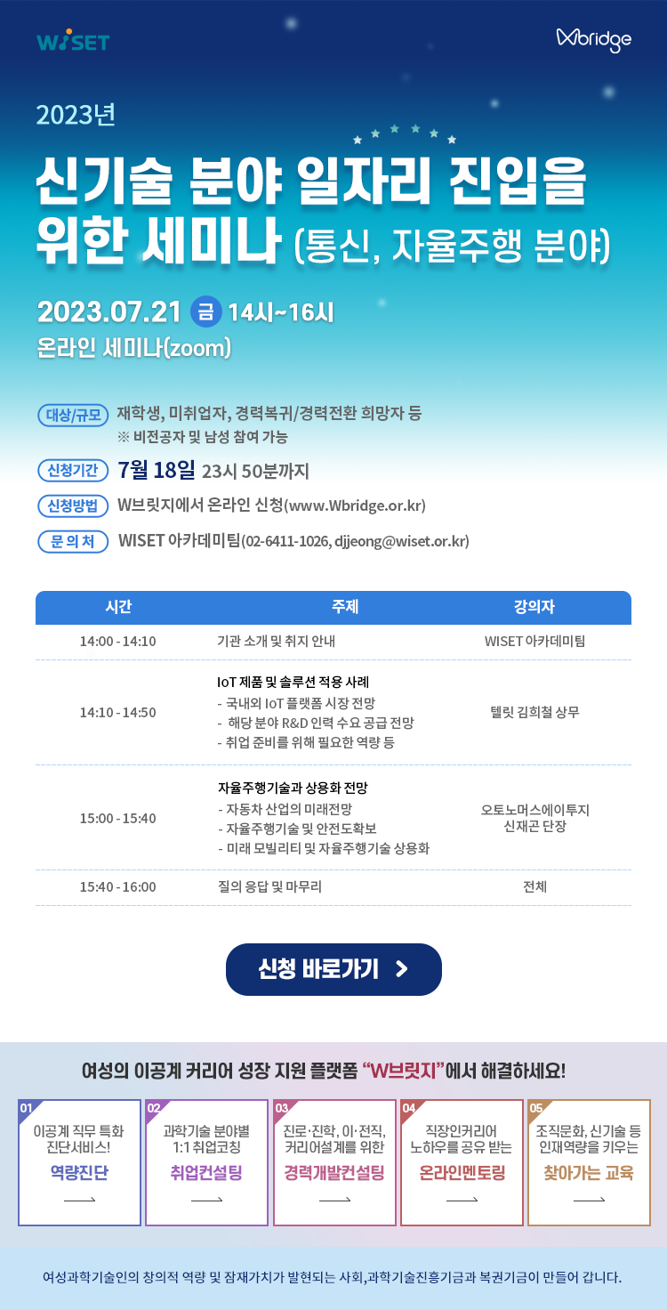 [WISET] 신기술 분야 일자리 진입을 위한 세미나 (통신, 자율주행 분야)