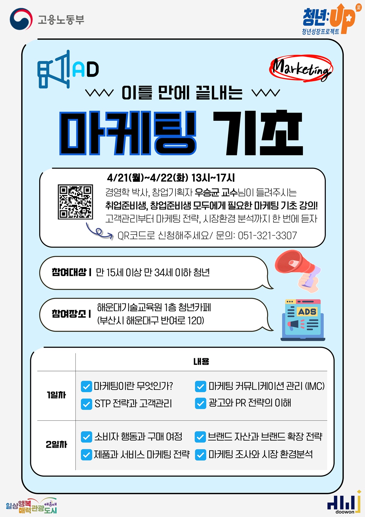 [고용노동부]해운대 청년job카페 드림포트 교육 프로그램 안내