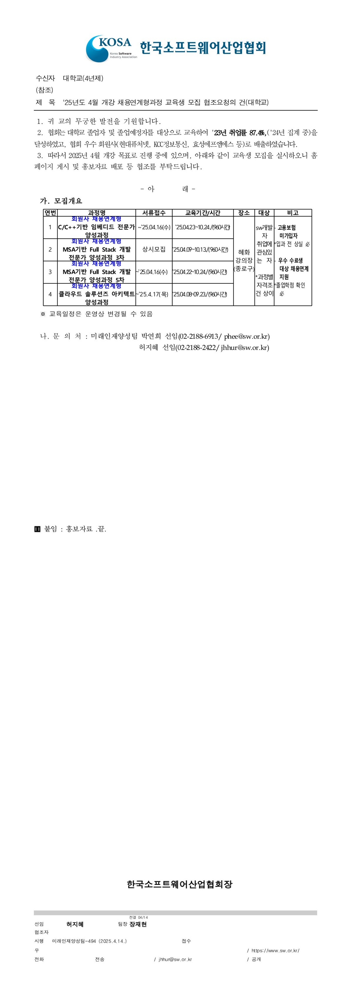 [한국소프트웨어산업협회 회원사 채용연계형 교육과정