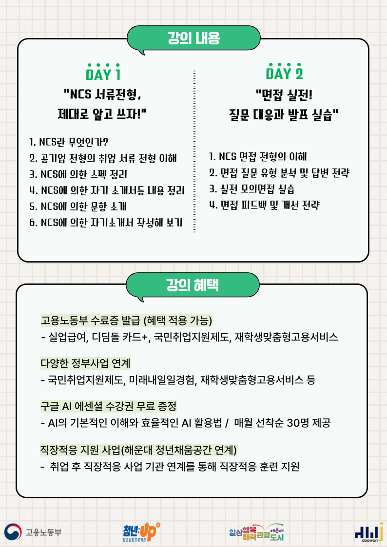 해운대청년 job카페 드림포트 10월 교육 프로그램 안내