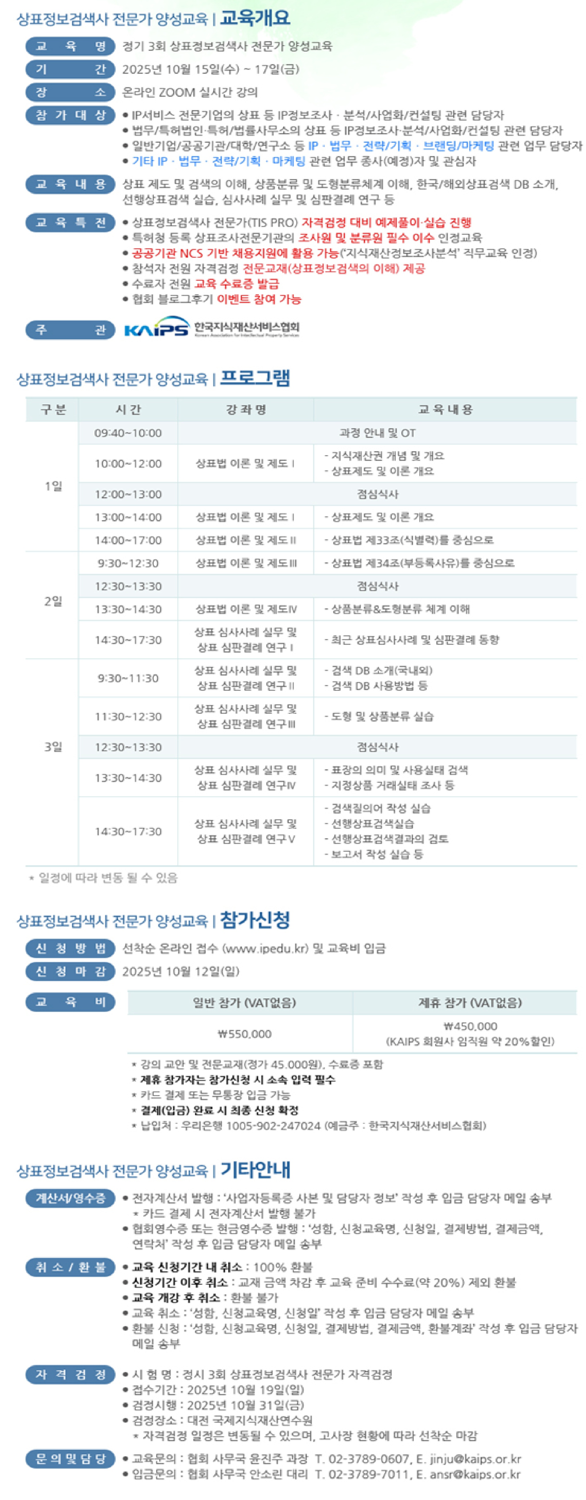 ※ 정시 3회 상표정보검색사 전문가(TIS PRO) 자격검정은 10월 19일(일)까지 접수중이오니 첨부파일을 참고해 주시기 바랍니다.